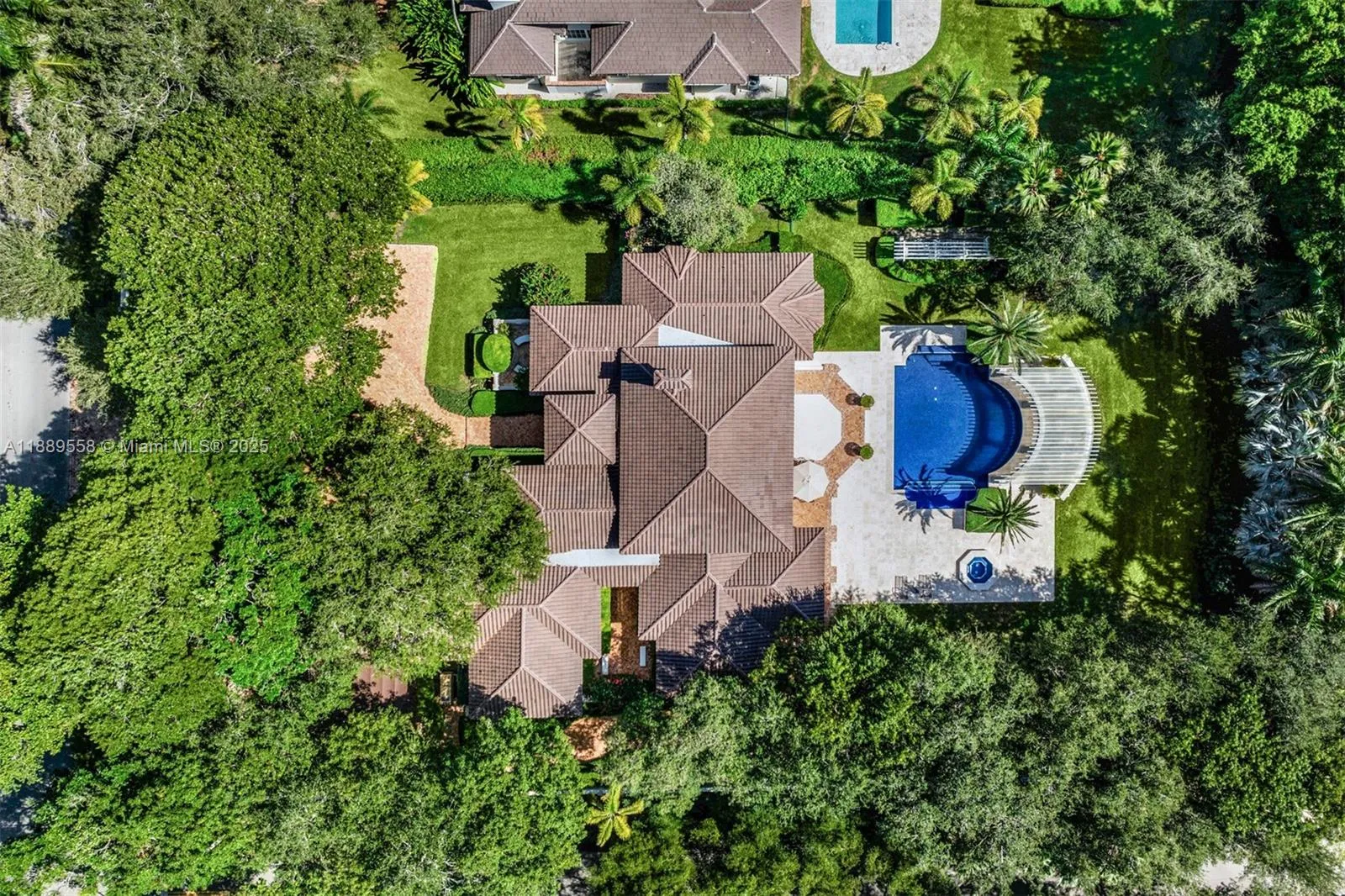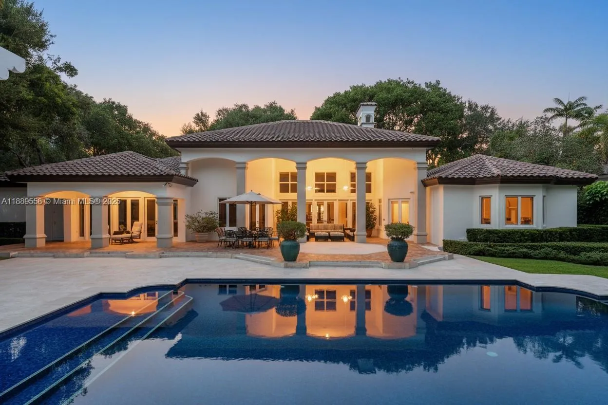 Elegant Mediterranean estate nestled in the heart of Pinecrest on a magnificent 47,916 sq ft lot, offering 5,992 sq ft of refined living space. This 6-bedroom, 5.5-bath residence showcases soaring vaulted ceilings, a wood-burning fireplace, and plantation shutters throughout. The gourmet kitchen, wet bar, and expansive living areas create an exceptional setting for entertaining. The primary suite boasts his-and-hers vanities and custom built-in closets. Outdoors, enjoy a resort-style ambiance with a stunning pool, gazebo, and lush landscaping. A circular driveway with fountain, 3-car carport, brand-new roof, full house generator, and a completely repainted interior elevate this home’s timeless elegance and modern comfort.