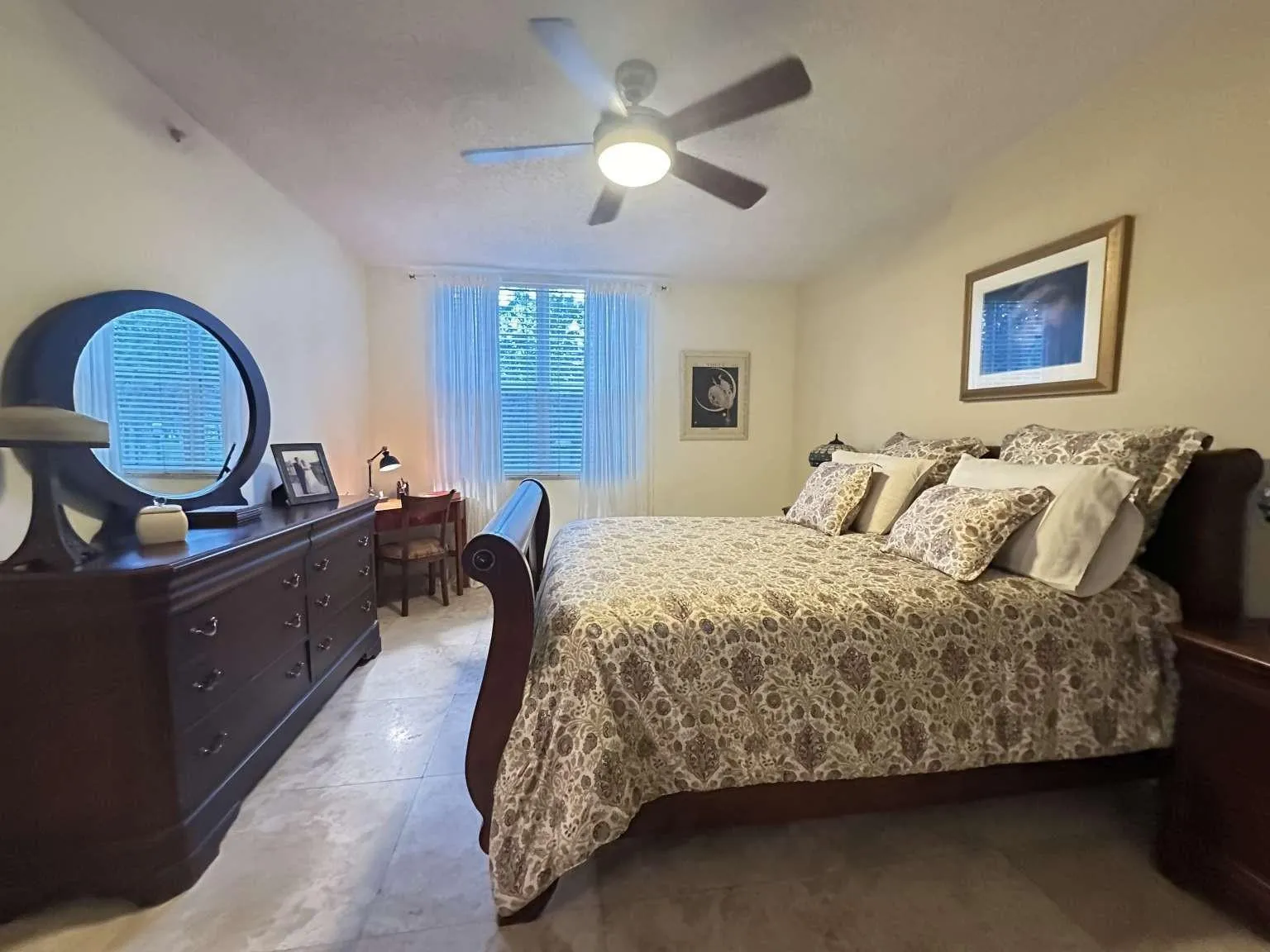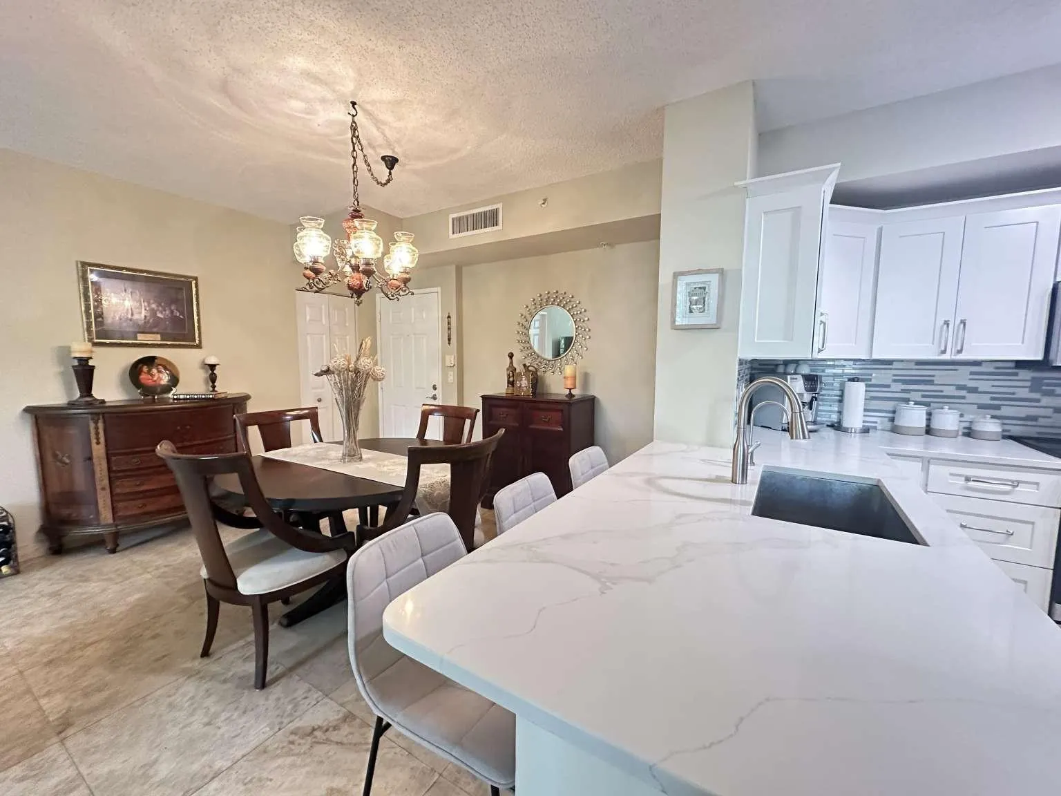 Experience ideal urban living at The Courtyards in CityPlace! This beautifully updated 3-bedroom, 2-bath condominium — one of only five 3-bedroom units in the community — features two master suites, travertine tile flooring throughout, and an open layout designed for comfort and style. The updated kitchen includes quartz countertops, a redesigned pantry, and stainless steel appliances. Both bathrooms feature upgraded vanities with quartz counters. The Courtyards is a gated, pet-friendly community offering resort-style amenities: pool and spa, fitness center, business and social rooms, concierge, on-site management, and secure garage parking (two spaces included). Short-term rentals permitted up to 12 times per year (30-day minimum), providing excellent flexibility for seasonal or