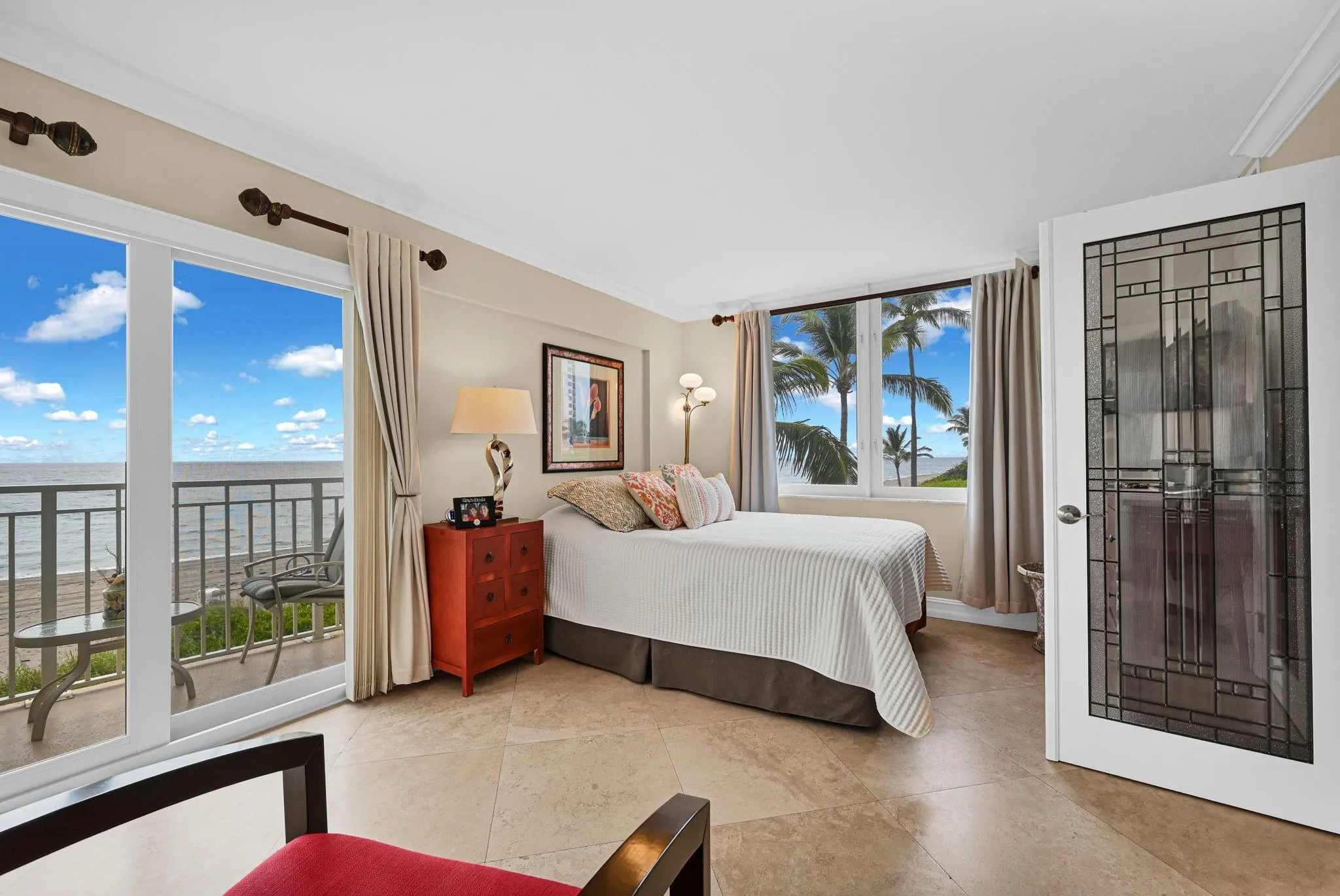 Available for rent starting January 5th — minimum lease term of 6 months. Discover coastal luxury in this beautifully updated 2-bedroom, 2-bath corner residence with breathtaking direct ocean views. Located in the prestigious Highland Beach, this home offers elegance, comfort, and an exceptional beachside lifestyle. This bright corner unit features panoramic ocean vistas, elegant travertine flooring throughout the spacious living and dining areas, and two private terraces perfect for enjoying sunrise views and refreshing sea breezes. Additional highlights include impact-resistant windows and a covered parking space for convenience and peace of mind. Enjoy resort-style. Live surrounded by ocean beauty and sophisticated coastal charm.