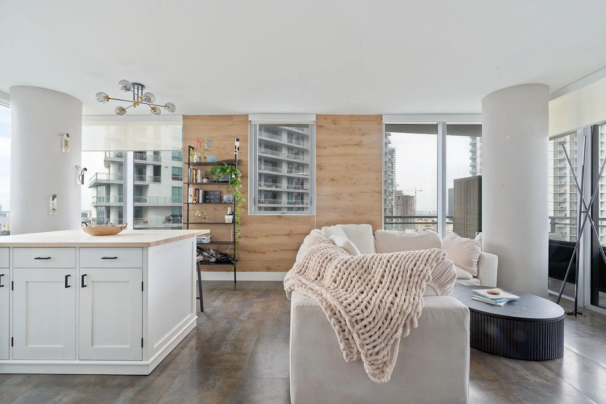 Completely renovated 2BD corner unit with stunning views overlooking Brickell and the Miami River. From wooden accent walls to chic light fixtures, the unit exudes modern luxury. The beautiful kitchen combines high-gloss cabinetry with both wooden and black countertops to create a sleek look. Located on the 31st floor, enjoy the breeze at sunrise with eastern-facing balcony views. The windows span west, north, and east, offering panoramic city views. In the primary bedroom, an abundance of natural light floods through sliding doors that open to a private balcony. The light extends into the gorgeous primary bathroom, where a frosted glass shower wall looks onto the room. The second bedroom also features an ensuite bathroom.The unit is in a modern, renovated building called The Mint