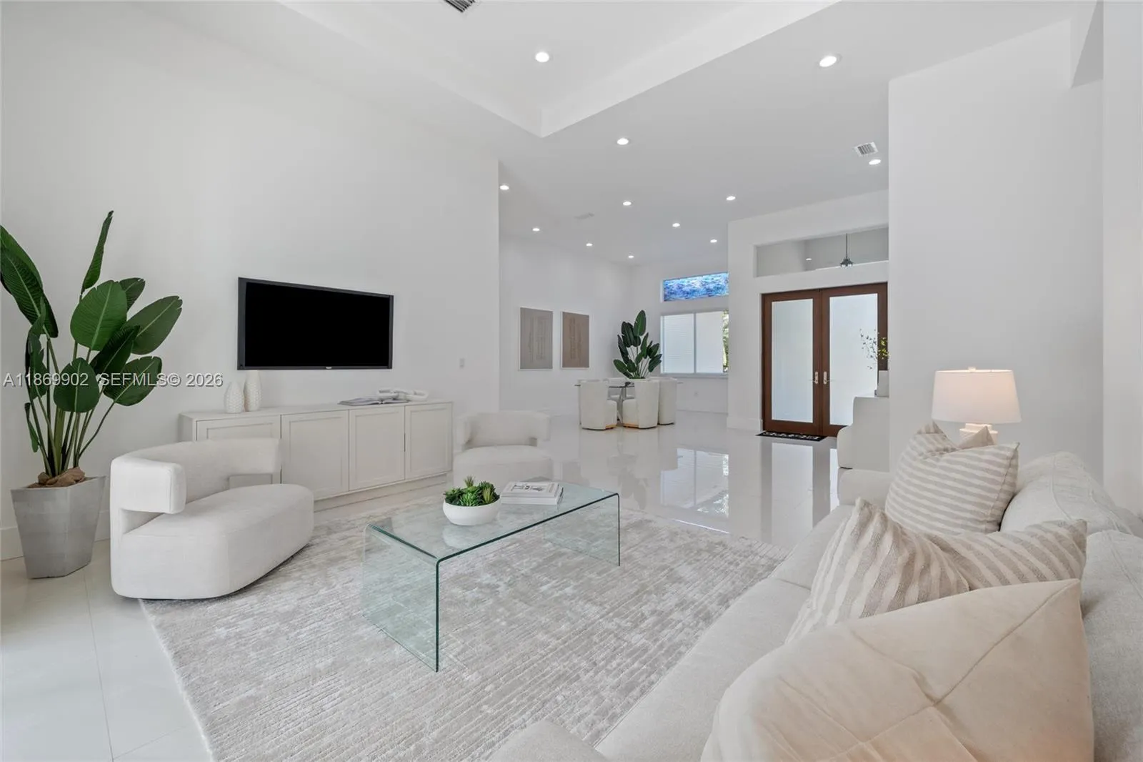 Built in 2019 by a contractor. This beautiful 4,500+ SQFT, 4-BD, 5-BA home sits on a sizable 18k+ SF lot. The residence showcases beautiful curb appeal on quiet block. Walk into 13 foot ceilings with custom oversize 8 ft doors. An eat-in kitchen offering marble & granite countertops, stainless-steel appliances, built-in island/table doubles as seating, & walk-in pantry for extra storage. The open layout seamlessly connects the kitchen, & family rooms with sliding doors to the patio, merging indoor and outdoor entertainment areas. Enjoy your backyard all year round, covered patio, & plenty of room to entertain guests. Additional features include an irrigation with well water, Generator, impact, 2-car garage, pre-wired for security cameras & surround sound.