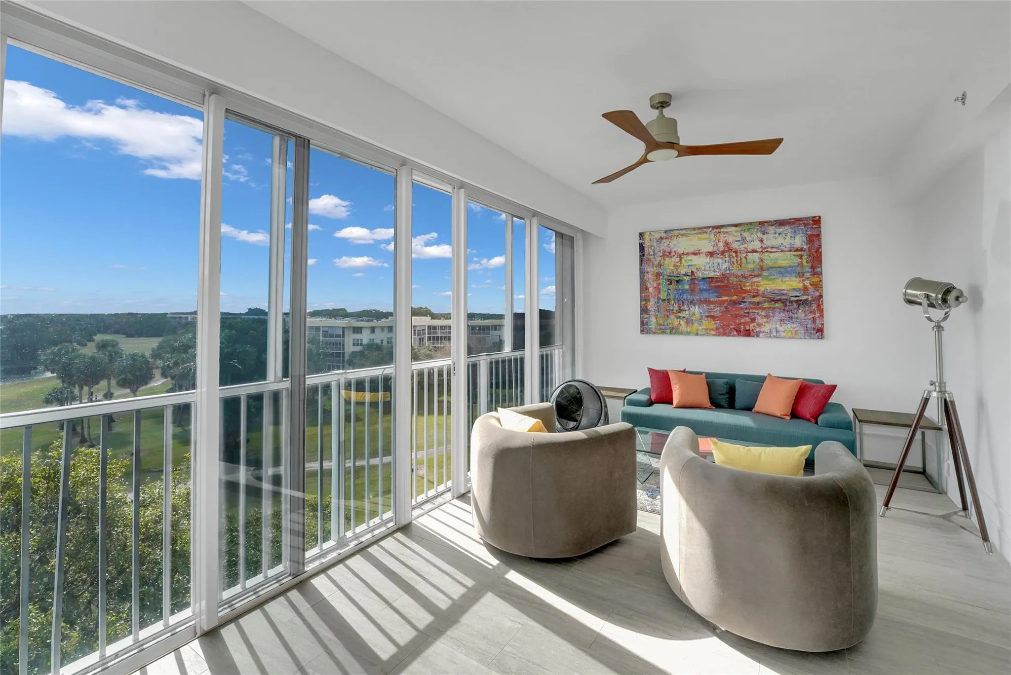Discover the epitome of sophistication in this fully remodeled 6th-floor Dorado Model, offering 2,440 sq. ft. of exquisite living space. This 2-bedroom, 2.5-bath residence includes a versatile den and showcases elegant upgrades designed for both comfort and style. Enjoy stunning panoramas of the Cypress Golf Course from the expansive 34-ft enclosed porch. Smooth porcelain floors flow seamlessly throughout, 9-foot ceilings and floor-to-ceiling impact glass windows and sliders invite abundant natural light into every corner. Redesigned kitchen features an open layout, waterfall countertop, and enhanced workspace. Master bath boasts tub, enlarged spa shower, dual sinks, and illuminated LED mirrors. Enjoy the privacy of a semi-private lobby and elevator. Don’t Miss It!