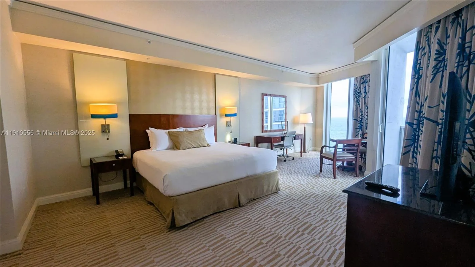 Experience refined luxury in this spacious 2BR/2BA condo-hotel dwelling with a beautiful Sun drenched Southeastern Exposure . Fully furnished and designed for flexibility, can be rented as 2 separate units perfectly managed through the Hotel Program or approved for Airbnb. The elegant primary suite boasts an open living area, floor-to-ceiling glass, a full kitchen, breakfast bar, dining area, washer/dryer, plus a king bed, walk-in closet, desk and a lavish bathroom. The adjoining studio features 2 queen beds, kitchenette, and full bath. Indulge in world-class amenities and effortless ownership in one of the most prestigious addresses in the world, adjacent to the recently completed Estates At Aqualina with prices ranging from $5 to $40 million. Note-unit 2114 – 1021 SqFt, unit 2115 -457 SF