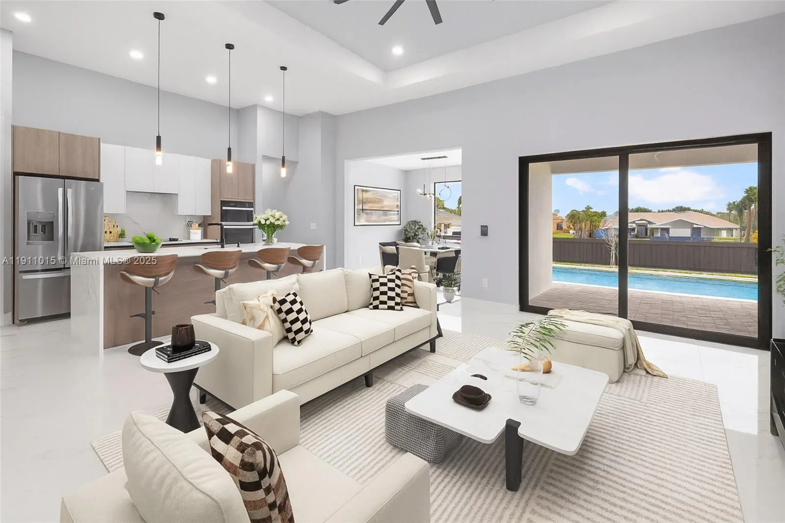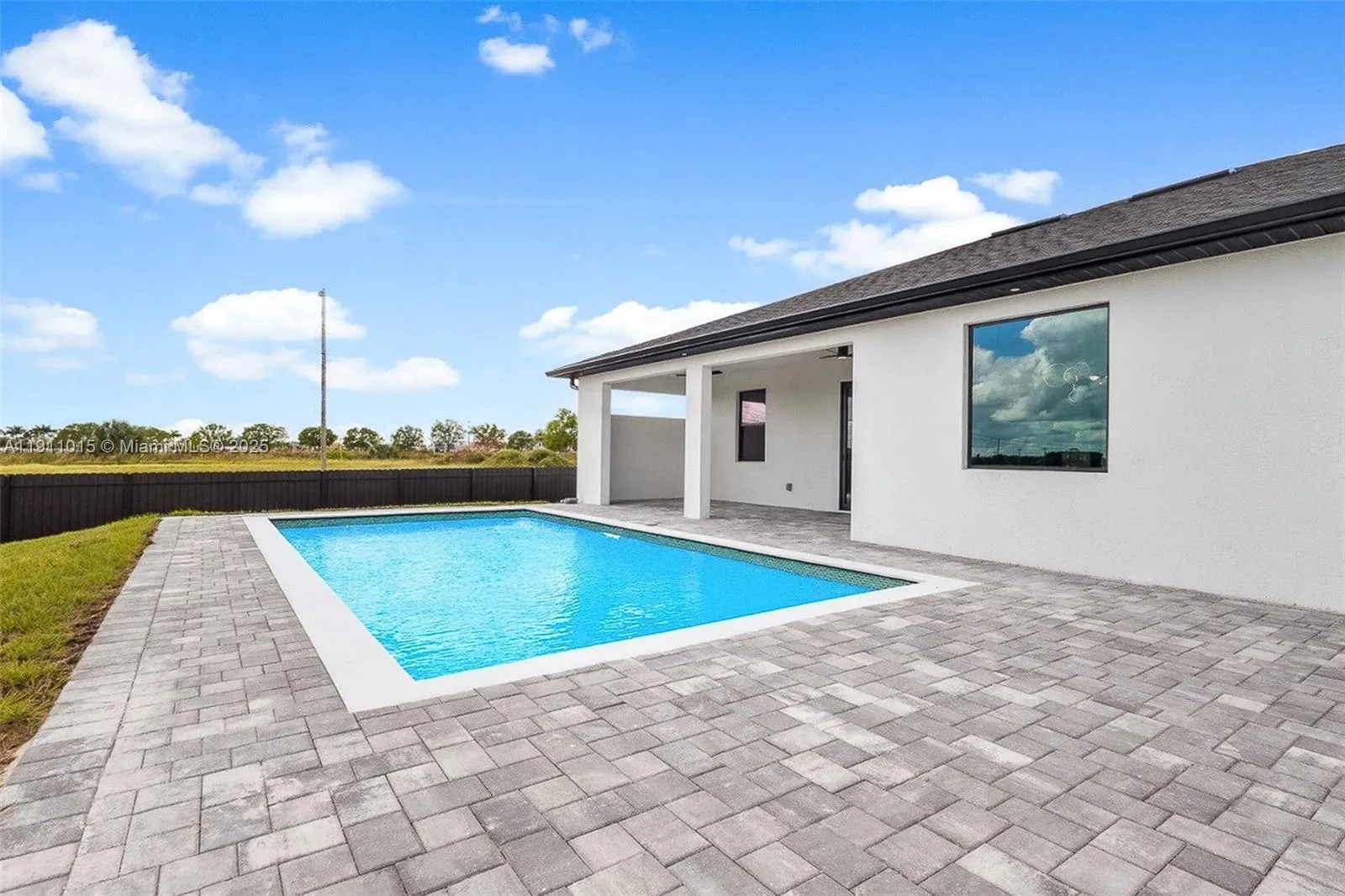 Stunning Custom Home in NE Cape Coral! Located just 3 minutes from Del Prado Blvd, this beautiful new construction offers easy access to restaurants, shopping centers, and schools.Featuring an open-concept layout filled with natural light, elegant porcelain tile floors, and a gourmet kitchen with sleek quartz countertops, stainless steel appliances, and custom cabinetry. Impact-resistant windows and doors provide peace of mind, energy efficiency, and lasting protection. Step outside to your private oasis — a spacious backyard with a sparkling pool, perfect for entertaining or relaxing under the Florida sun. Built by a reputable local builder, this home comes with up to 10 years of structural warranty, giving you confidence and long-term value.