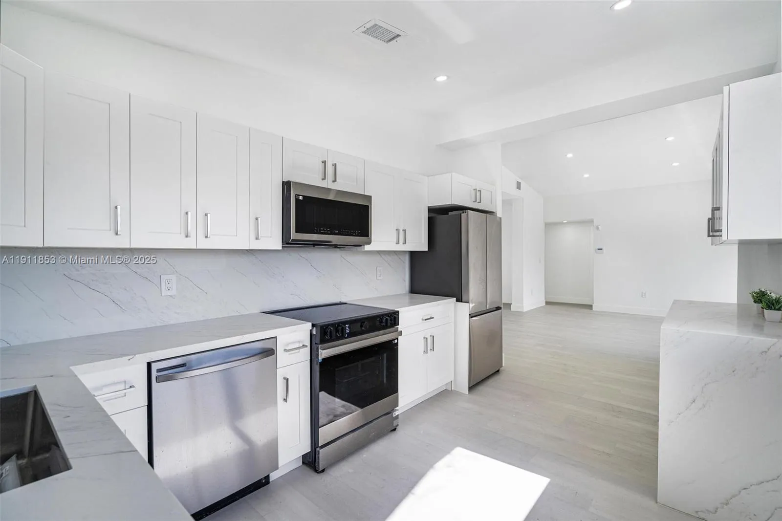 GORGEOUS FULLY REMODELED HOME WITH A PRIVATE POOL, HIGH CEILINGS, A LARGE MASTER BEDROOM WITH WALK-IN CLOSET, BEAUTIFUL MASTER BATH WITH DOUBLE VANITIES. NEW FLOOR THROUGHOUT, NEW SOLID WOOD CABINETS, NEW CALACATTA QUARTZ COUNTERTOP, NEW SAMSUNG STAINLESS-STEEL APPLIANCES, NEW MODERN BATHROOMS, NEW INTERIOR CARPENTRY, NEW ELECTRICITY, LED SKY LIGHTS, TOUCH SCREEM BATHROOM MIRRORS, NEW ZEBRA BLINDS, NEW PVC-PLUMBING SYSTEM, NEW ELECTRICITY, NEW AC UNIT, NEW AC DUCTS, NEW ROOF 2025 YEAR, NEW HIGHT IMPACT WINDOWS, NEW DURA FENCE GATES, NEW CONCRETE DECK, NEW DIAMOND BRITE POOL FINISH, NEW ALARM SYSTEM. ENJOY A SPACIOUS BACKYARD ENCLOSED BY A SOLID CONCRETE FENCE, OFFERING COMPLETE PRIVACY AND A PERFECT SETTING TO RELAX OR ENTERTAIN. COME SEE IT!