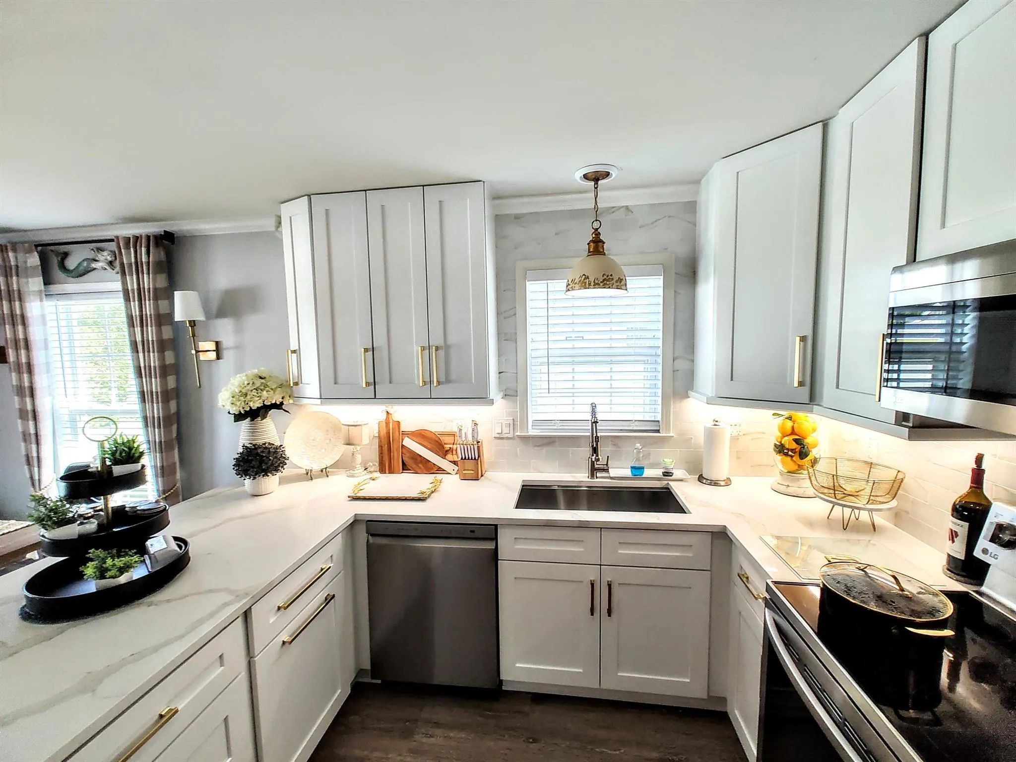 OMG! A Must See Move in Ready Key West Style Bungalow w/ many New Custom Upgraded Features! Some of the Features include a BRAND NEW ROOF, A $20,000+ Kitchen w/ Upper White 42” Shaker Cabinets w/ Gold Hardware, Under the Counter Lighting Throughout. All Lower Cabinets w/ Draws only for easy access, Quartz Counter Tops w/ Matching Subway Tiles for Backsplash w/ tiles around the Kitchen Window as an Added Feature, Coffee Bar, Crown Molding Throughout Home including Bath Areas, New Stainless Steel Appliances, Double French Doors w/ Great View of Green Lawn, New White Vinyl Fencing & Beautiful Norfolk Pines w/ No Back Neighbors. Electrical Upgrades, Bathroom Upgrades, Plumbing Upgrades, Expensive Sump Pump Upgrade, All New Luxury Vinyl Flooring Throughout & an Awesome Detached 1 Car Garage!
