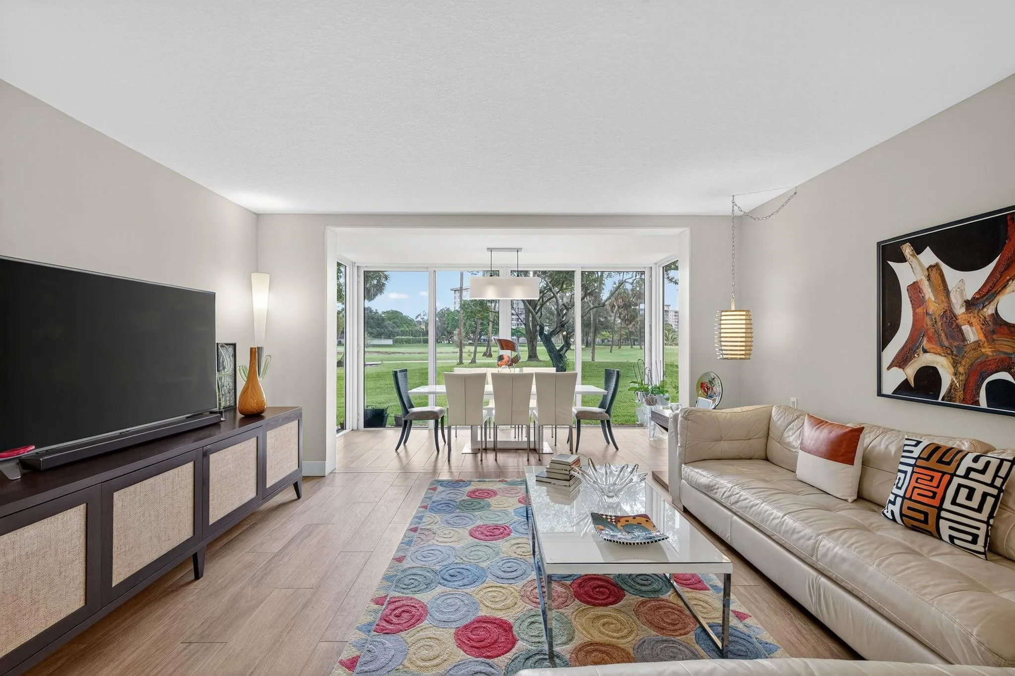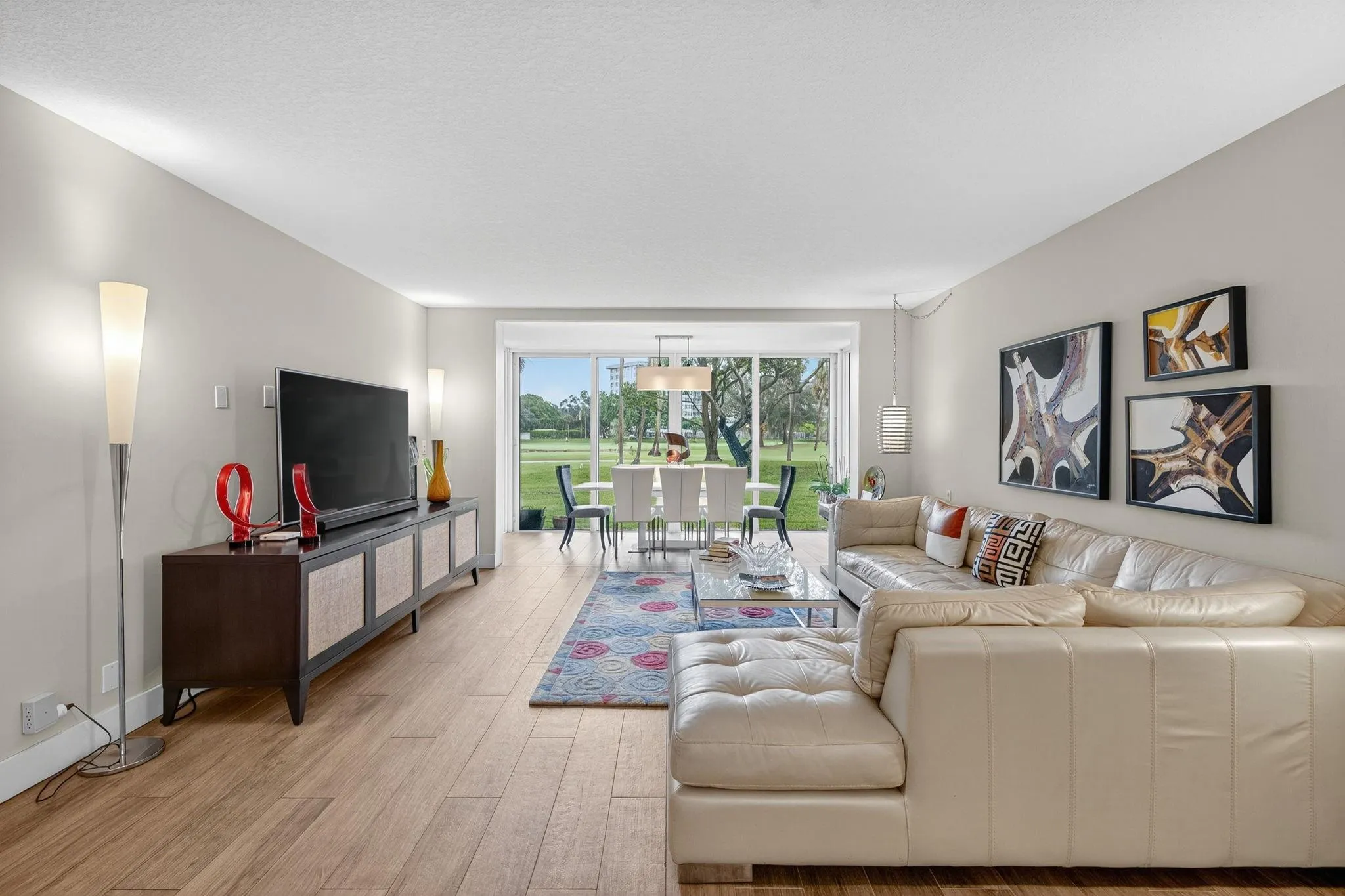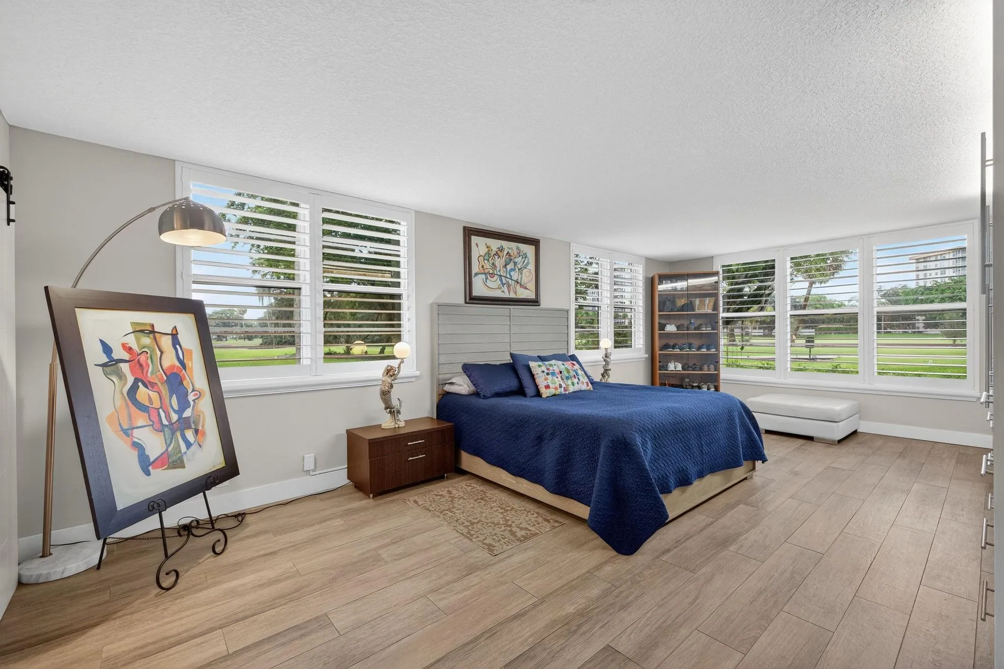 This is a must see! Come and take a look at this fully renovated, 1st-floor, corner condo featuring a contemporary open concept kitchen with high-end stainless-steel appliances. This residence also features FULL IMPACT WINDOWS INCLUDING THE GLASS ENCLOSED PATIO as well as beautiful flooring throughout. The glass enclosed patio/dining area provides a tranquil view of the golf course. The 2nd and 3rd bedrooms have been combined to create a very spacious (25′ x 14′) master suite with extensive custom-built cabinetry with ample storage for clothes, etc. The “original” master bedroom (16’x15′) features an en-suite bathroom and a custom-built queen size murphy bed (barely used) and is included with the sale. The condo fees include cable tv, water, exterior insurance, landscaping, etc.