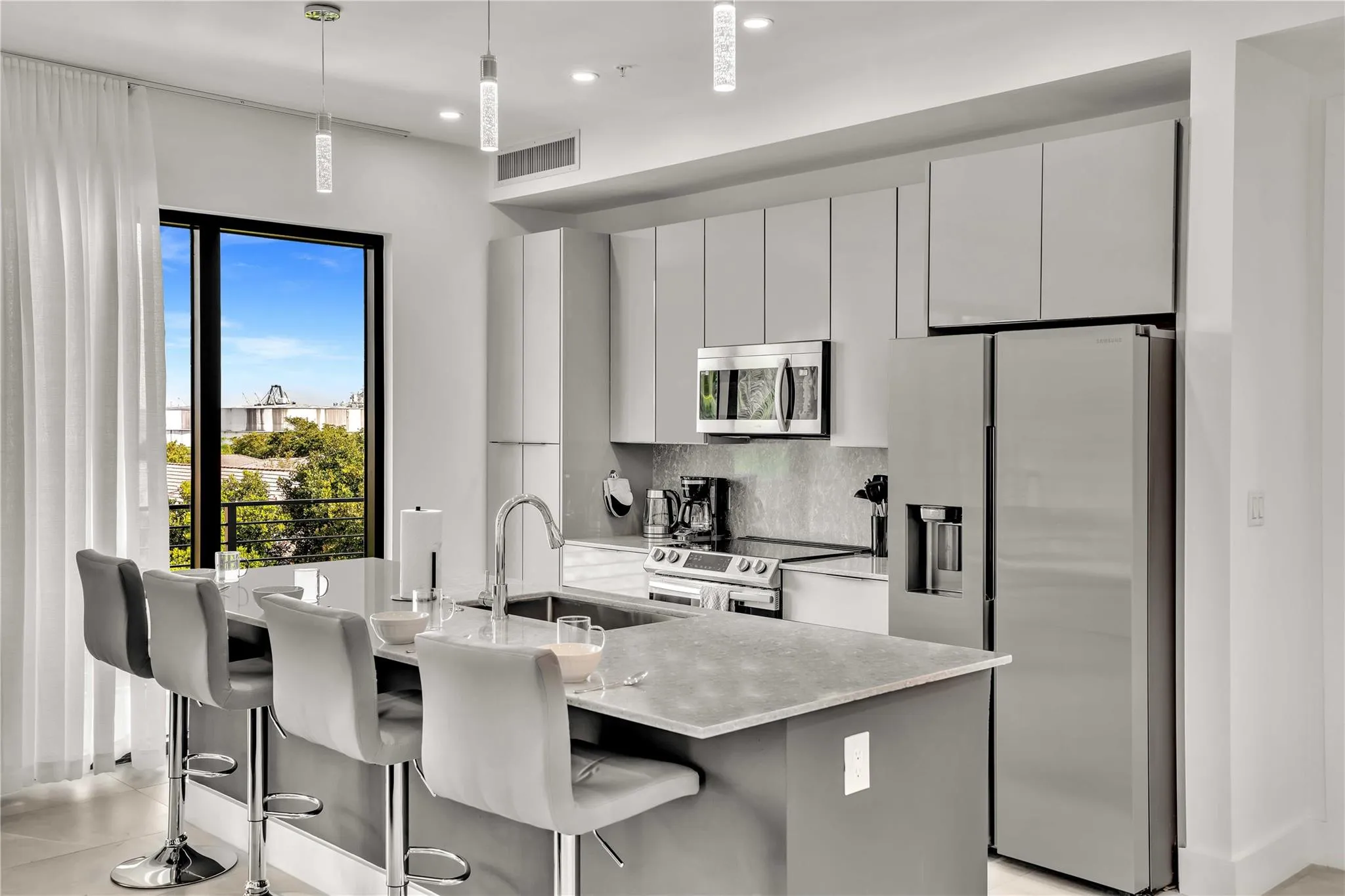3 BEDS + 3 BATHS | Corner unit in brand-new 2024 construction with high ceilings, modern design, and top-quality finishes. Bright and spacious layout filled with natural light and a large private balcony for relaxing or entertaining. Boutique 12-unit building offering a private gym and panoramic rooftop lounge with BBQ area. Premium appliances include washer, dryer, and wine cooler. Located in a quiet upscale neighborhood within walking distance to Whole Foods, Publix, cafés, and restaurants. Only 6 minutes to Downtown Fort Lauderdale, Las Olas, and the beach. Pet-friendly. Short-term leases available (with fee). Furniture optional at no extra cost. Enjoy sunrise coffee on your balcony and the evening breeze on the rooftop – where every detail feels like home.