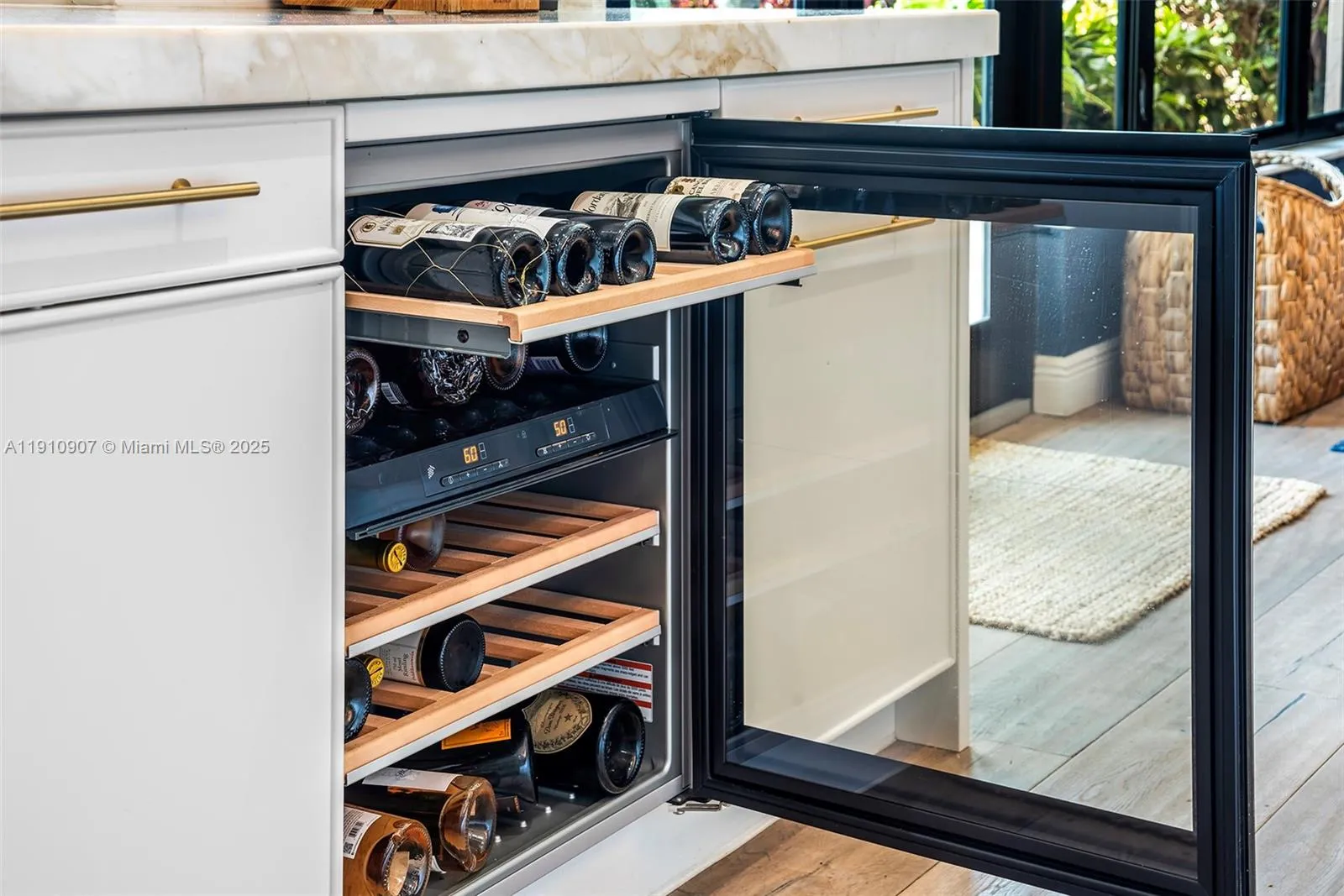 This stunning one-story custom-built home is a dream come true for yacht owners, offering 50ft of waterfront property. The home boasts high ceilings. Perfect for boat enthusiasts. Professionally decorated with the finest quality finishes throughout, including custom-built wall units, impact windows and doors, wood plank floors, and a newer flat tile roof. The home features a built-in bar, a huge great room, and a newer remodeled spacious eat-in kitchen with marble countertops and backsplash, a Miele gas stove, Miele oven, microwave, espresso, and wine cooler, built-in Subzero refrigerator and freezer, tall cabinets, and pull-out pantries. A must see opportunity.
