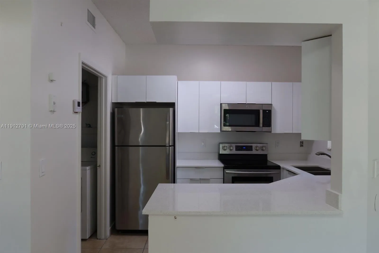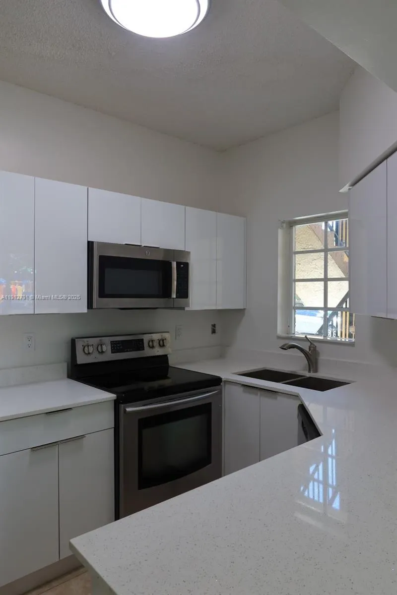Investors! See this beautifully updated condo! This bright, open floor plan features a new kitchen with stainless steel appliances and vaulted ceilings, creating an airy, spacious feel. Enjoy the convenience of an in-unit washer and dryer, laundry room, and extra storage closet. It is the perfect area for a home office, gym, or yoga space. Freshly painted and ready for its new owner. Parking right in front of the unit. Community amenities include a pool, clubhouse, spa, basketball and tennis courts, and playground. No rental restrictions. Easy access to I-75 and the Palmetto Expressway. Roof and exterior maintenance are included in the association fee.