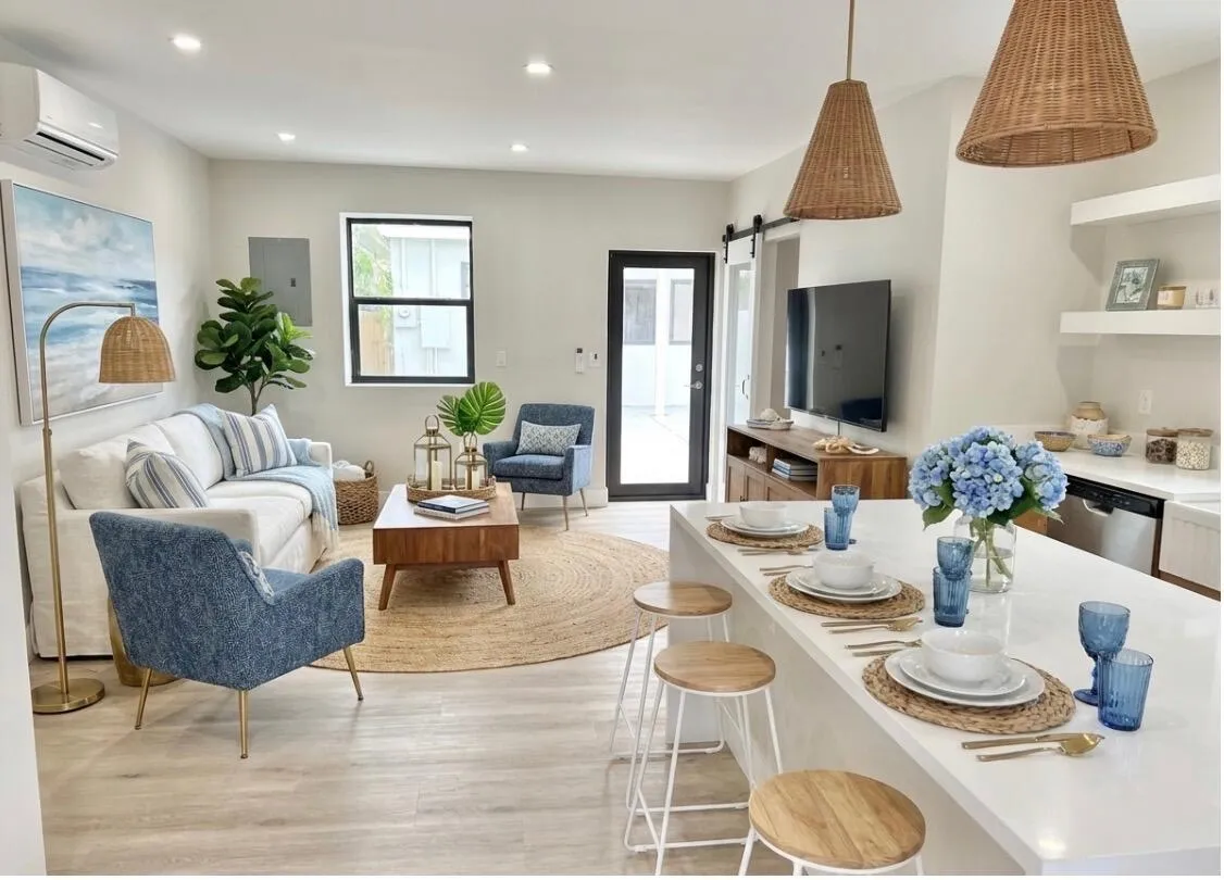 Welcome to 1121 N Ocean Breeze in the prestigious neighborhood of Parrot Cove- A truly one-of-a-kind property. Beautiful midcentury classic home with a guest suite and in-ground pool. The main house is a 2 bed /1 bath along with an equally stunning 1 Bed/1 Bath suite. Both are CBS construction with impact windows & doors. Professionally designed to preserve its vintage Florida charm with a modernized twist. Masterful kitchen complete w/ a porcelain farm-sink, quartz countertops, & SS appliances. Eat-in kitchen large enough to seat 3-4! Luxury vinyl flooring & 5inch baseboards throughout. Built-in sound system in & outside! Sun-soaked pool area suitable for entertainers & sun bathers. Lots of deck space and an outdoor shower w/ hot & cold! Large front lawn/courtyard area is rarely found.