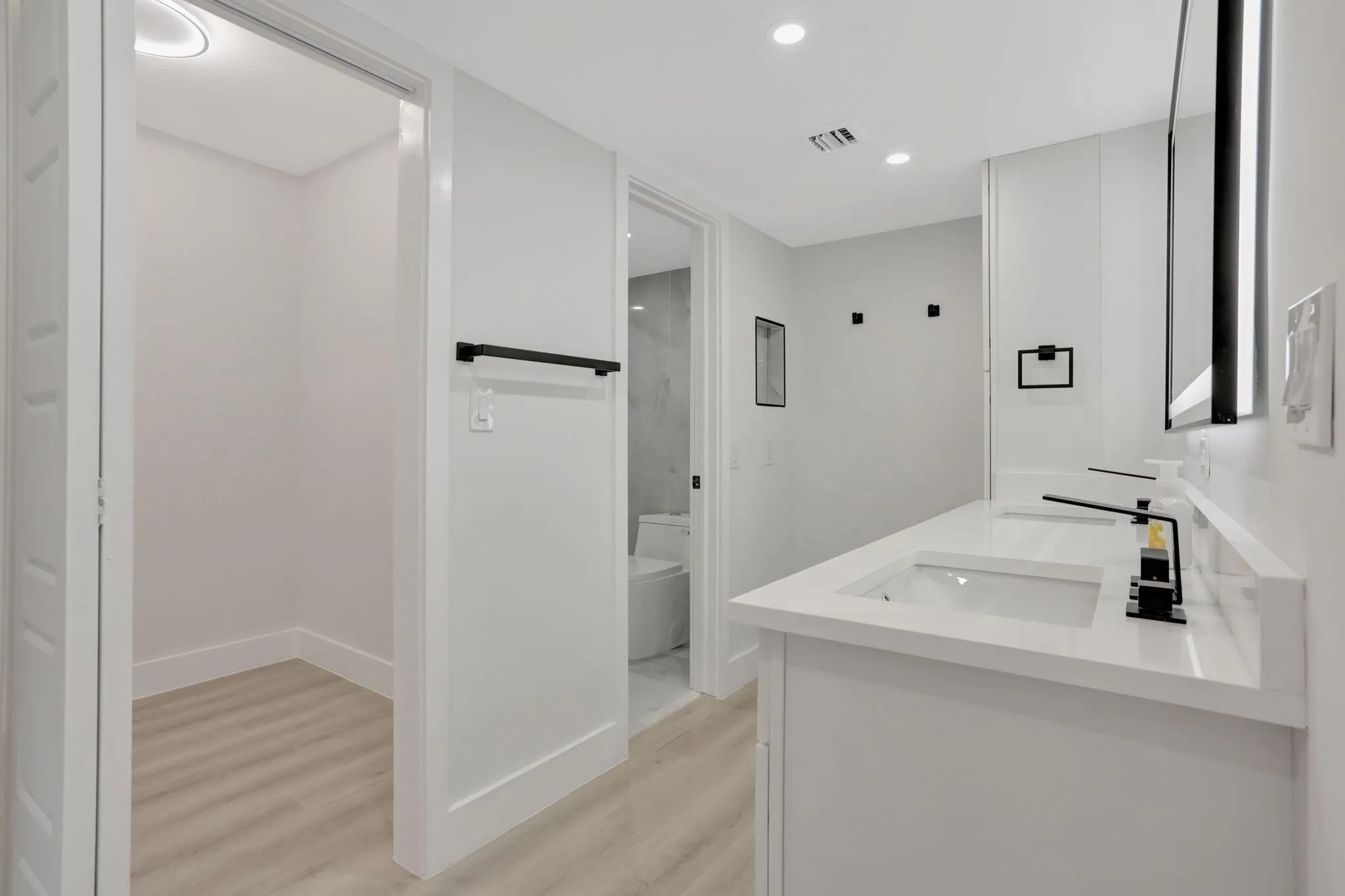 Welcome to this stunning fully renovated 3-bedroom, 2.5-bath condo in the highly sought-after Palm Aire community! Designed with elegance and modern comfort in mind, this home offers high-end finishes and an open-concept layout, perfect for entertaining or relaxing in style. Step into a bright and spacious living area with sleek flooring, designer lighting, and floor-to-ceiling sliders that invite in natural light. The gourmet kitchen boasts double shaker cabinets, quartz countertops, stylish backsplash and a full suite of Samsung stainless steel appliances. The primary suite is a true retreatfeaturing a spa-like en-suite bath with a double vanity, LED mirror, luxurious backlit niche, gold accents, and a sleek glass barn-style shower door. The two additional bedrooms are
