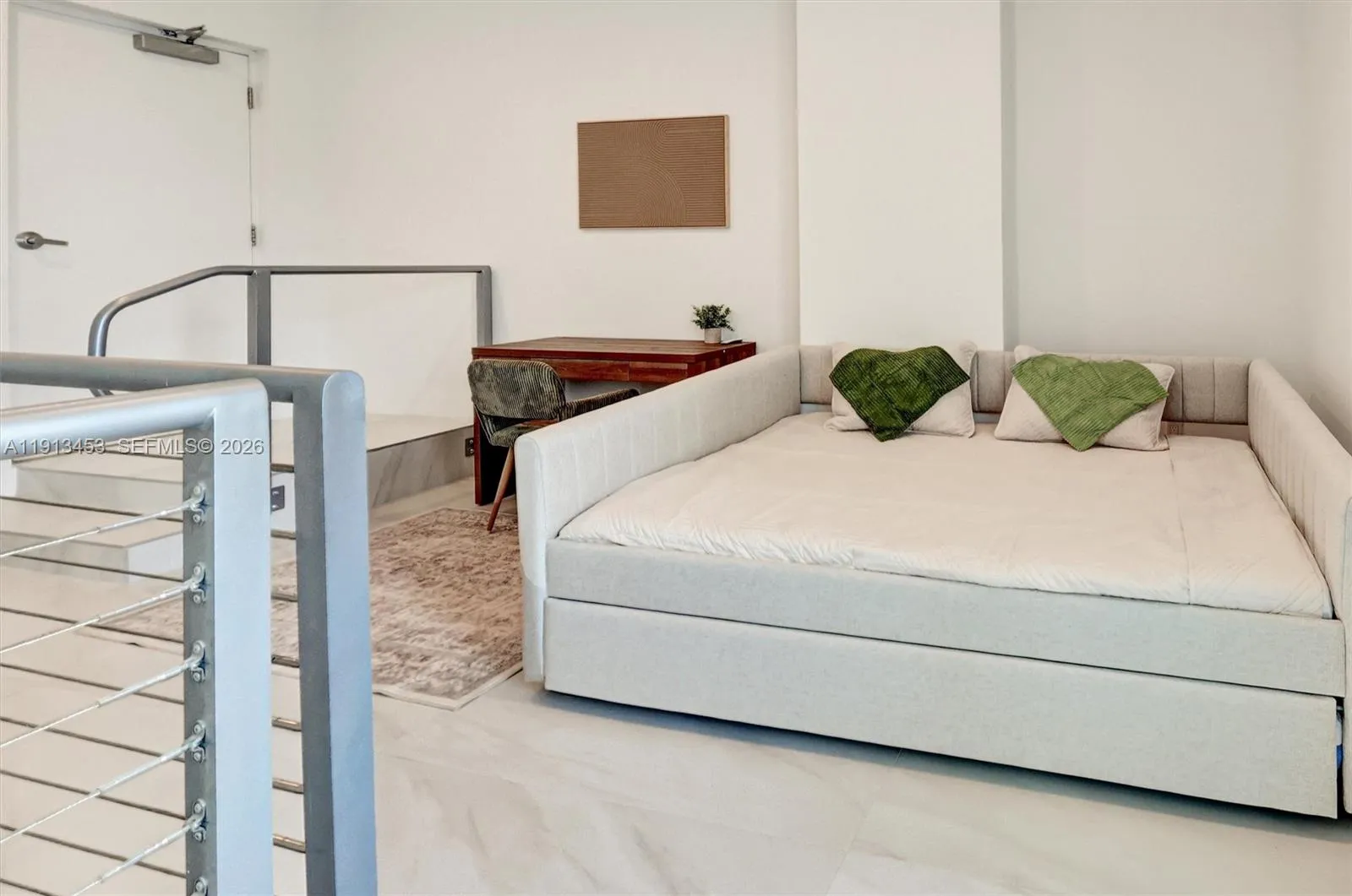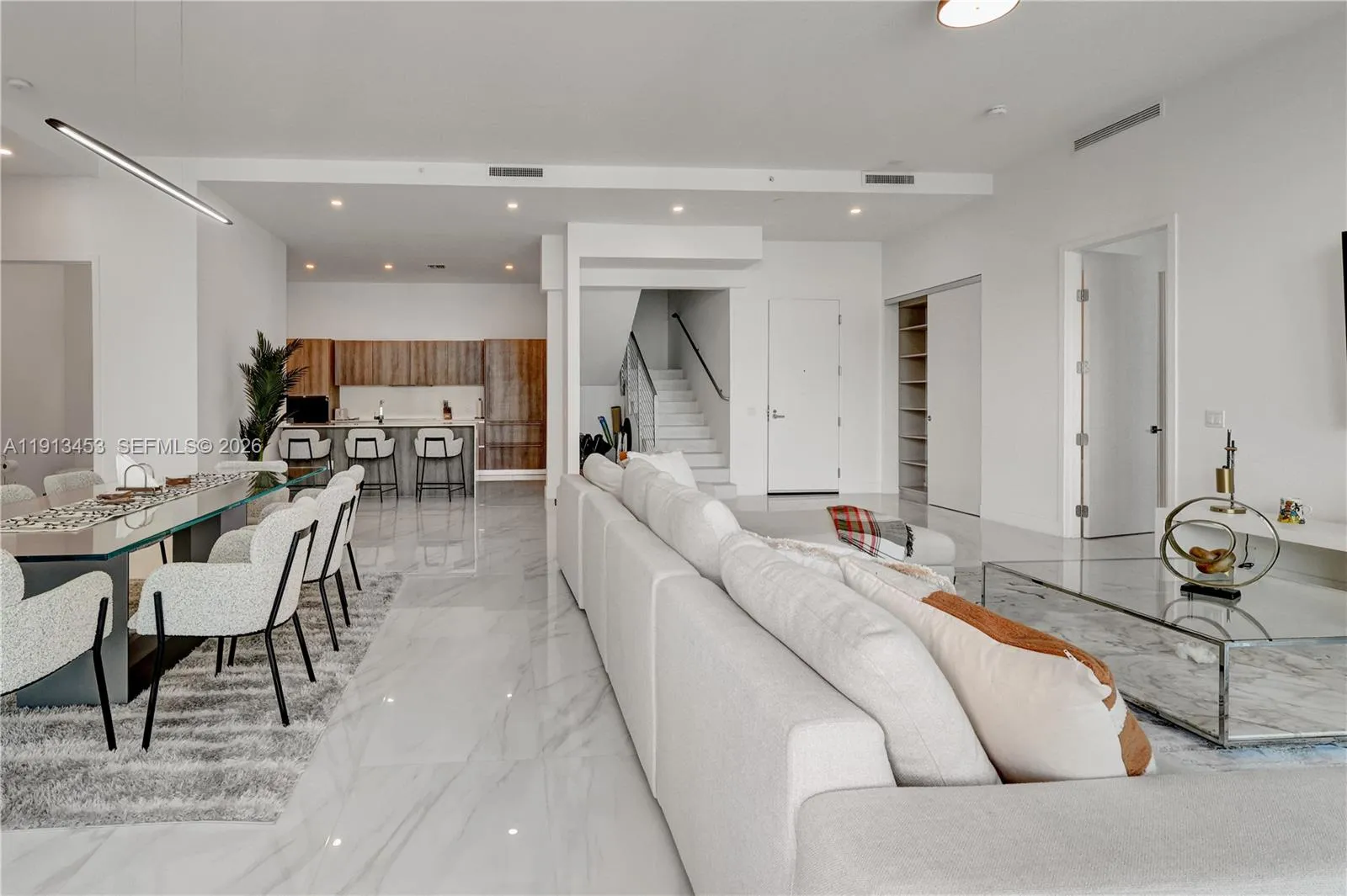Brand-new ocean-view penthouse in Sunny Isles Beach with private elevator entry and exclusive rooftop access. This two-story residence offers 2 bedrooms, a full second-floor den with pullout sofa, and 2.5 baths, featuring floor-to-ceiling windows and panoramic ocean views. The second bedroom has 3 beds. Private rooftop terrace for outdoor living and entertaining. Second floor ideal for a private office. Amenities include 4th-floor pool. Walk to beach, shops, and dining. Available short term from February.