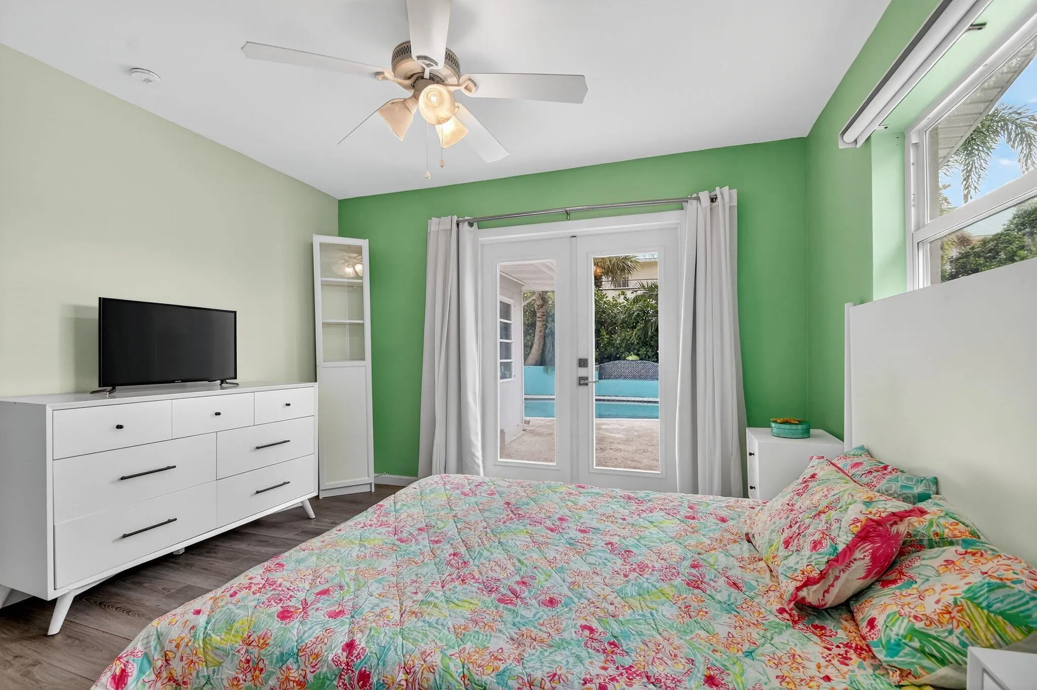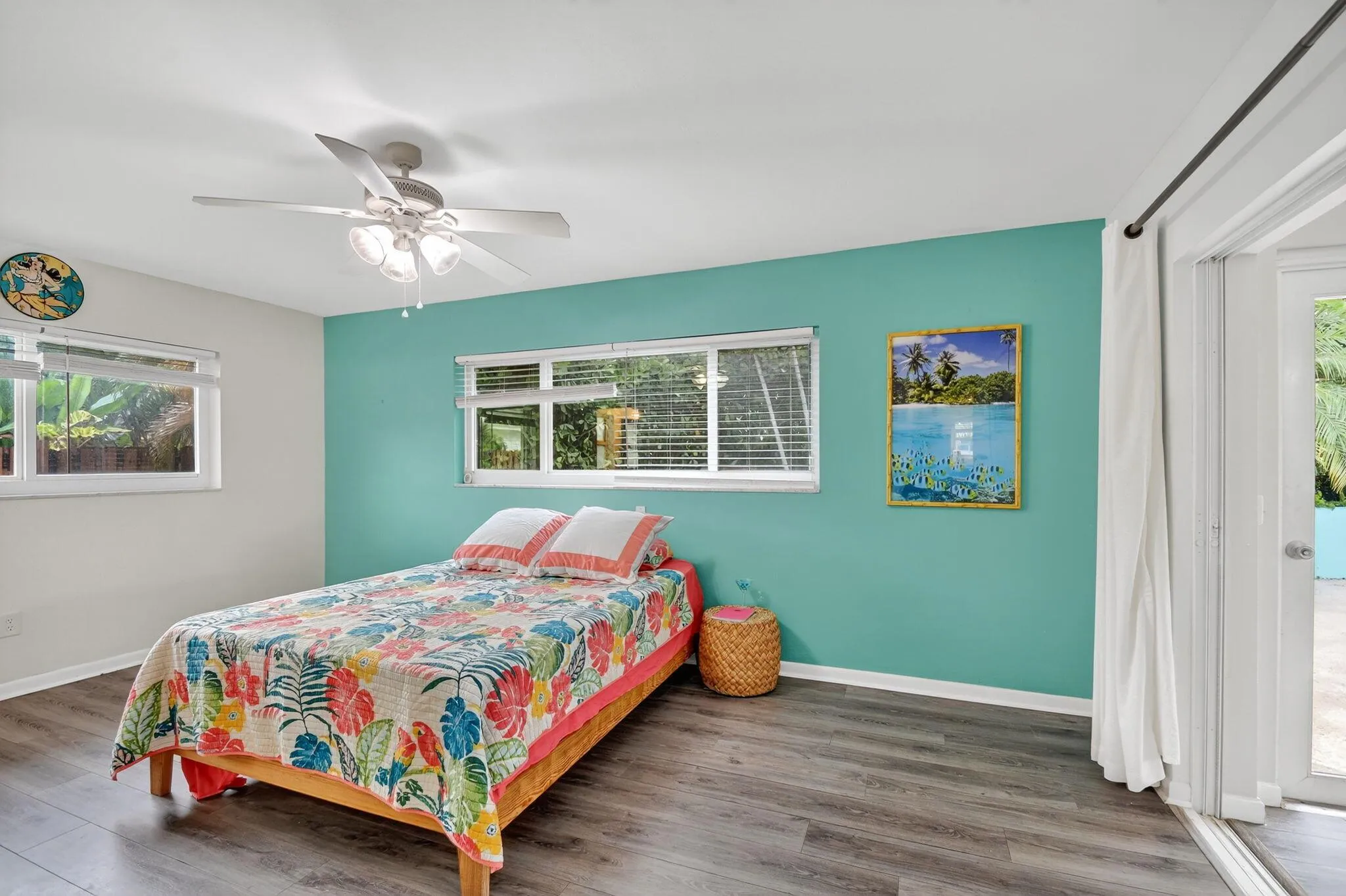 Beautifully updated 3BR/2BA mid-century pool home located in the desirable waterfront community of Hypoluxo Shores, just steps away from the intracoastal. Also listed for annual rent at $5,000 per month. This single-story residence features a split floor plan, open living areas, and a versatile Florida room overlooking a private tropical backyard retreat.Recent major updates include impact windows and doors (2022), roof (2023), and HVAC (2024) for worry-free living. The upgraded kitchen offers granite countertops, stainless steel appliances, and ample storage. Wood-look flooring flows throughout the living spaces, creating a warm and inviting feel.