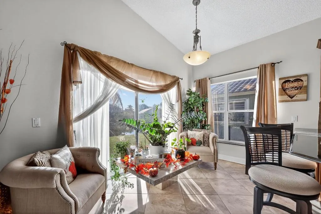 Welcome Home to this beautiful oasis located in The Estates at Windchime Lakes, a private gated community. Updates include roof, CAC, exterior painting, and enclosed patio. This home has an open floor plan with high ceilings, primary bedroom and laundry on first floor. The kitchen is equipped with custom wood cabinets, granite countertops, stainless steel appliances, tiled floor, and sliding glass doors that look out onto the lake. Living room and dining room have high ceilings, tiled floors, and large windows with alot if natural sunlight. Primary suite has ensuite bathroom with jacuzzi tub and stall shower as well as sliding glass doors to an enclosed private patio. The second floor boast 2 bedrooms, 1 full bathroom, and a loft style office area. Community amenities including a resort-st