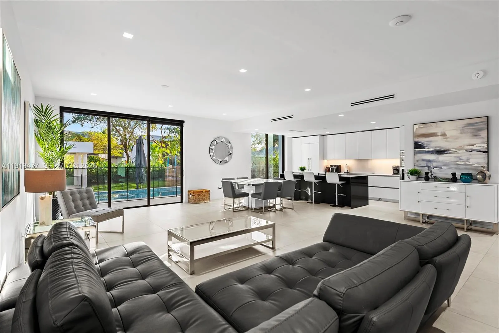 Experience modern luxury in this stunning 5-bed, 5-bath residence offering over 4,000 sq. ft. of elegant living space, perfectly situated between Aventura and North Miami. Ideal for families, and highly attractive for short-term rentals offering strong income potential. The home features open-concept interiors with spacious indoor and outdoor living areas, a contemporary chef’s kitchen with premium appliances, and high-end finishes throughout. The beautifully landscaped backyard showcases a private heated pool surrounded by lush greenery. Located within walking distance to multiple synagogues, and just minutes from the new Brightline Aventura Station and Greynolds Park. Additional highlights include a large carport accommodating multiple vehicles and an electric vehicle charging station