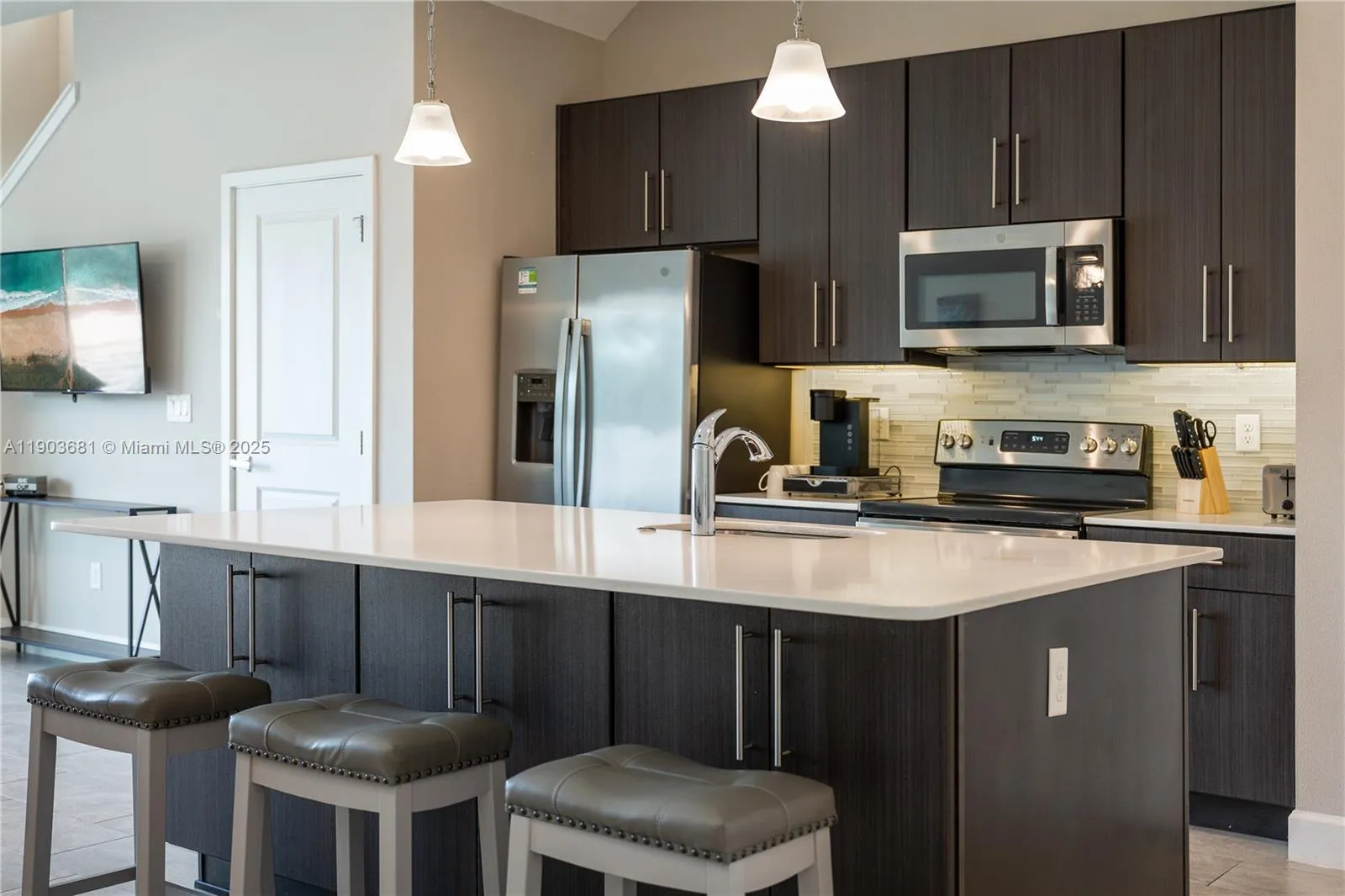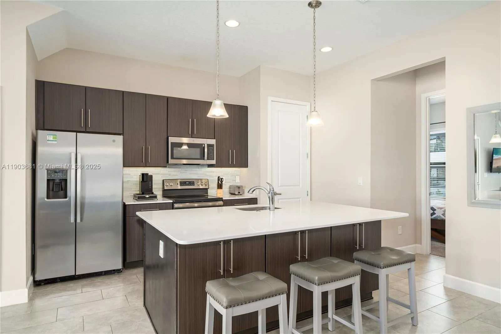 Luxurious two-story home in the gated Villa Domani resort, fully furnished and ideal for a first home. This 4-bedroom property is located minutes from Champions Gate’s shopping, dining, and only 15 minutes from Disney. The main level includes a modern kitchen with 42” wood cabinets, quartz countertops, and stainless appliances. Sliding doors open to a private courtyard with a fenced lanai and splash pool. Upstairs offers spacious bedrooms, a loft, and a voluminous master with a large walk in glass shower. Villa Domani amenities include a clubhouse, fitnessrncenter, pool, and spa.