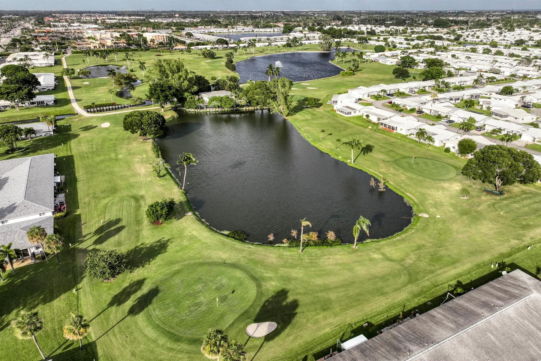 Enjoy the best of South Florida living in this beautifully updated 2-bed/2-bath Condo with lake, canal, and golf course views. Featuring a bright Key West-inspired design with coastal colors, light blue tones, and breezy decor. Located in Leisureville, an active 55+ community where residents play the private 18-hole Par 3 course FREE! Featuring over $40,000 in recent improvements, including impact-resistant hurricane windows/doors, new roof (May 2025, assessment paid), fully remodeled kitchen with new appliances, updated bath, and new washer and dryer. The bright, open layout flows to a patio overlooking the lush grounds, perfect for relaxing or entertaining. Residents enjoy three heated pools, clubhouses, fitness center, sauna, billiards, shuffleboard, bocce, workshops, and a full