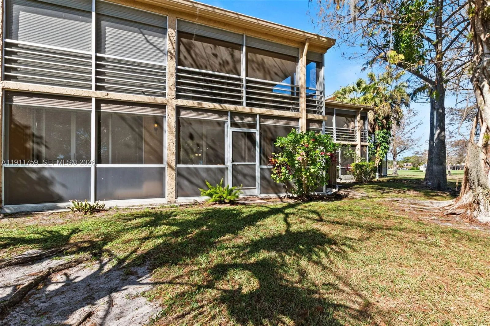 Welcome to effortless indoor-outdoor living in this beautifully maintained 2-bedroom, 2-bath condo just steps from the lush golf course. The oversized, fully screened wraparound porch creates the ultimate extension of your living space — perfect for morning coffee, evening relaxation, and enjoying peaceful green views year-round.rnrnInside, you’ll love the large open-concept living and dining area filled with natural light and designed for comfortable everyday living and easy entertaining. The desirable split floor plan features two private primary suites, each with spacious walk-in closets and ensuite bathrooms. The second suite includes sliding glass doors with direct access to the patio, offering a seamless indoor-outdoor retreat ideal for guests, roommates, or multigenerational living. rnrnAdditional highlights include an in-unit full-size washer and dryer, assigned parking conveniently located just steps from the entrance, and a welcoming all-ages community.rnrnIf you’re looking for space, privacy, and a true Florida lifestyle setting, this one checks every box. All ages are welcome community.