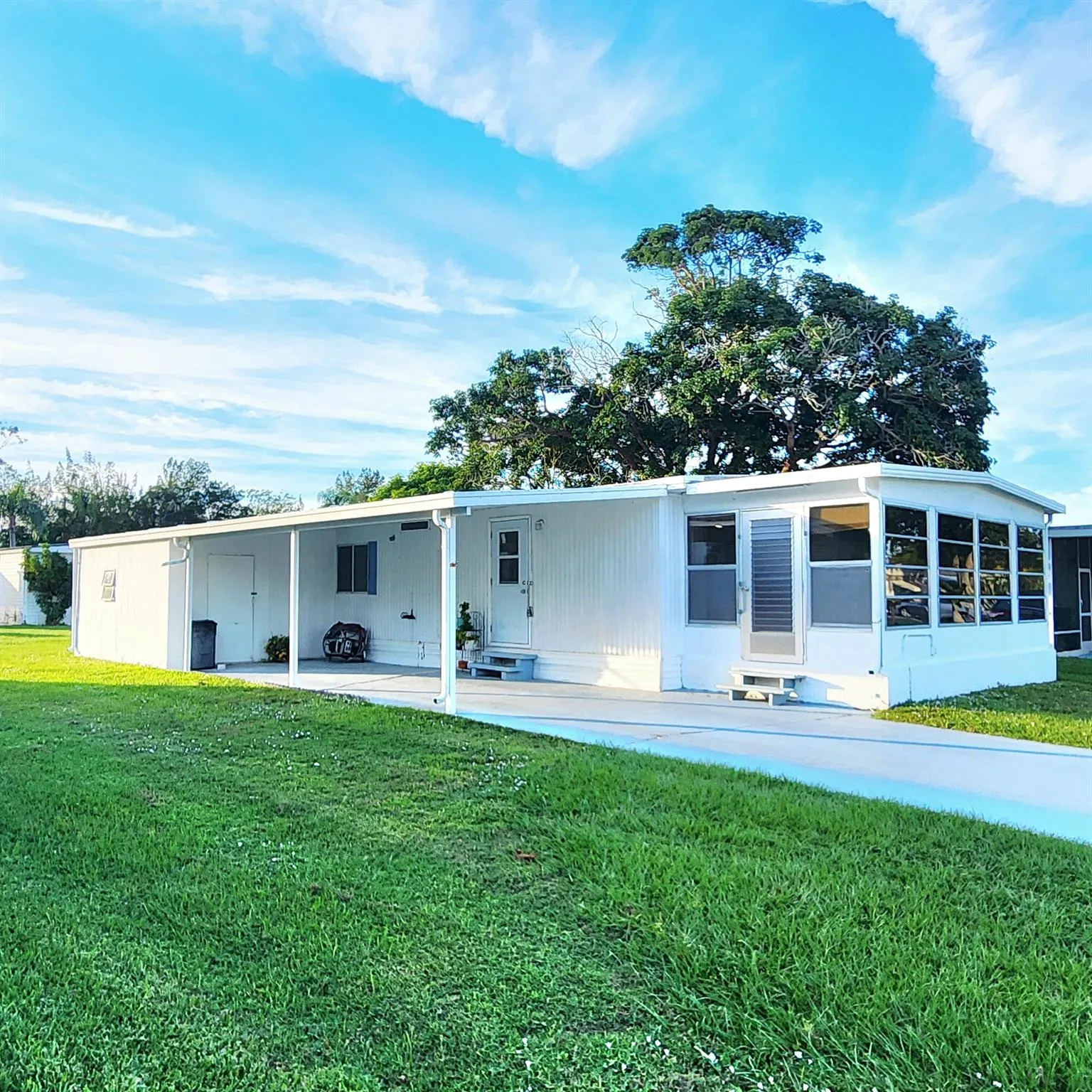 Charming 2 bed/2bath on a cul-de-sac. Partially Furnished w/ a large Florida room perfect for a home office, 2nd living room, pet or plant room! Flooring replaced. Ample storage inside & out. Large shed available. This house is nestled in a peacefully quiet, yet active, 55+ community. You will be pleased w/ this prime location; close to the beach, mall, grocery stores, shopping, post office, banks, pharmacies, hospitals & more. Lot lease of only 930.98 includes security, cafe, Clubhouse w/activities, lawn care, trash, free private golf course, bingo, heated pool, pickleball, tennis, workshop, shuffleboard, bocce, gym, library, cards, Mahjong, clubs & more! Grab your slice of paradise in the highly desired town of Port St Lucie!