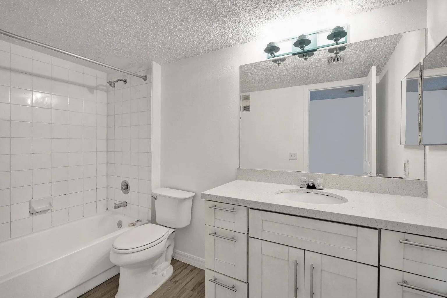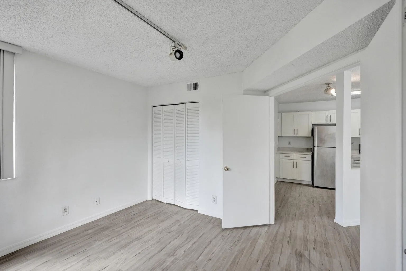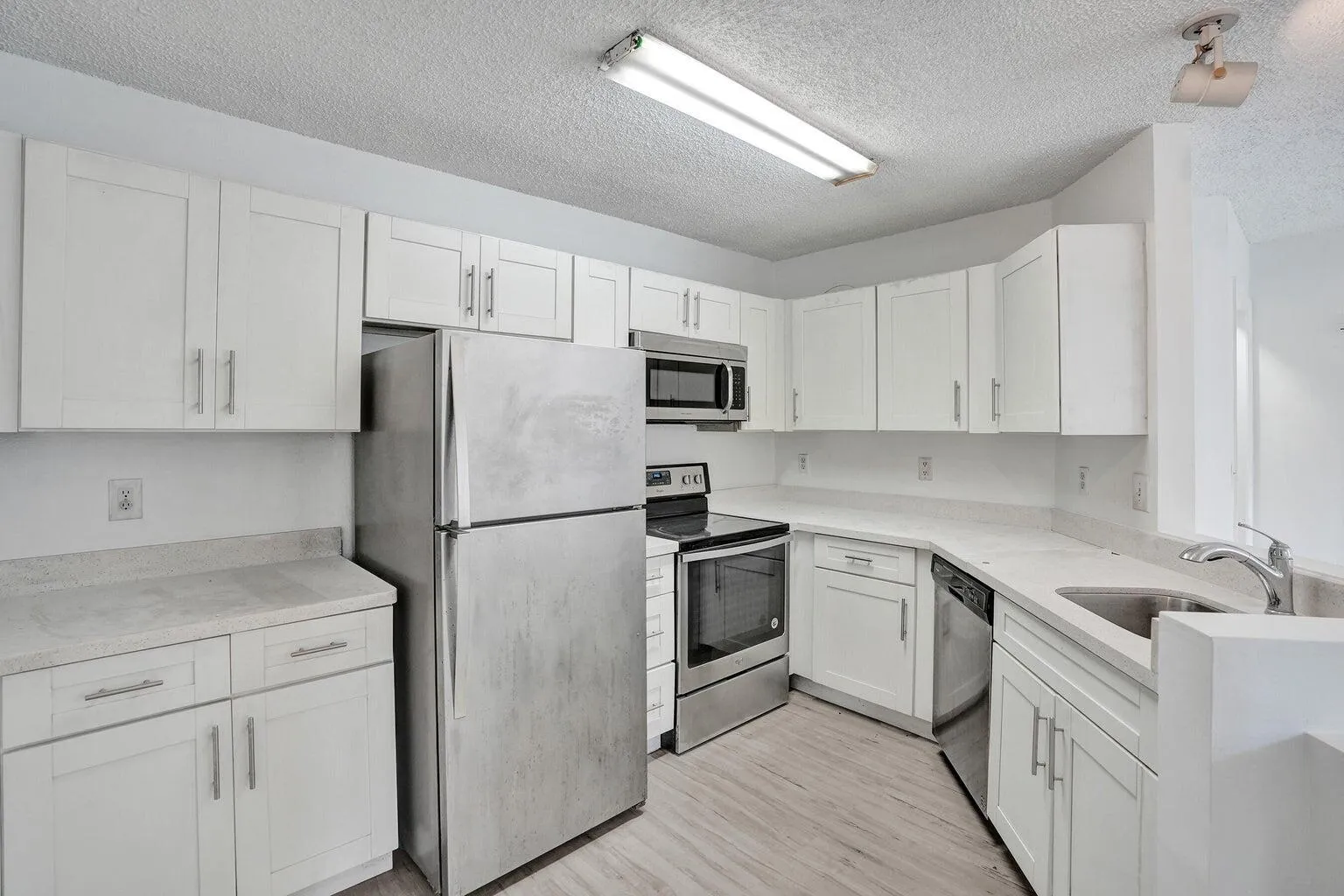 Remodeled 2 bedroom, 1 bath corner unit on second floor. The kitchen features quartz countertops, stainless steel appliances, and white shaker cabinetry. Other features include vinyl floors throughout, a covered screened private balcony facing the garden, and indoor laundry room.