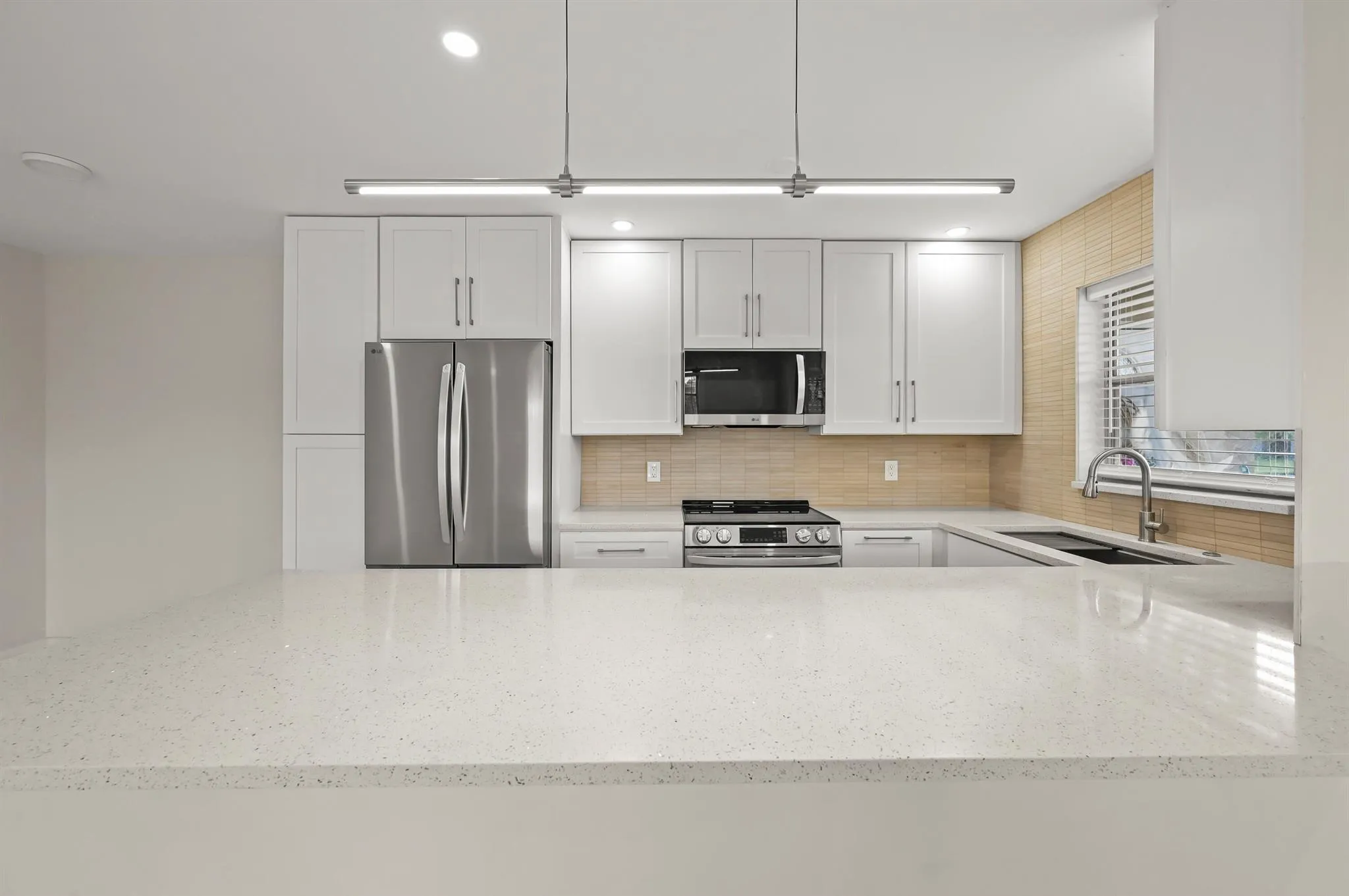 Step into sophistication in this fully renovated condo, where every detail has been upgraded to the highest standards. A bright, open floor plan welcomes you with new wide-plank ceramic tile flooring, custom LED lighting, and premium finishes throughout.The chef-inspired kitchen features sleek cabinetry, quartz countertops, a statement backsplash, and brand-new stainless steel appliances. Open kitchen flows into the spacious living and dining areas.Spa-quality bathrooms have been completely transformed with contemporary tile, designer fixtures, and high-end vanities.Additional highlights include updated electrical and plumbing, fresh paint, and thoughtfully selected materials that bring style, comfort, and style.Move-in ready and crafted with care.