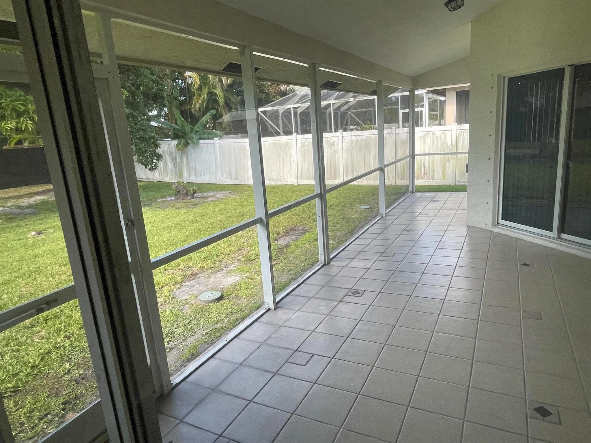 Spacious 3 bedrooms with the den that could be an office or 4th bedroom, 2 bathrooms, 2 car garage. Large kicthen area, family room, formal dining, living room, high ceilings. All tiles and wood floors, screened in back porch.