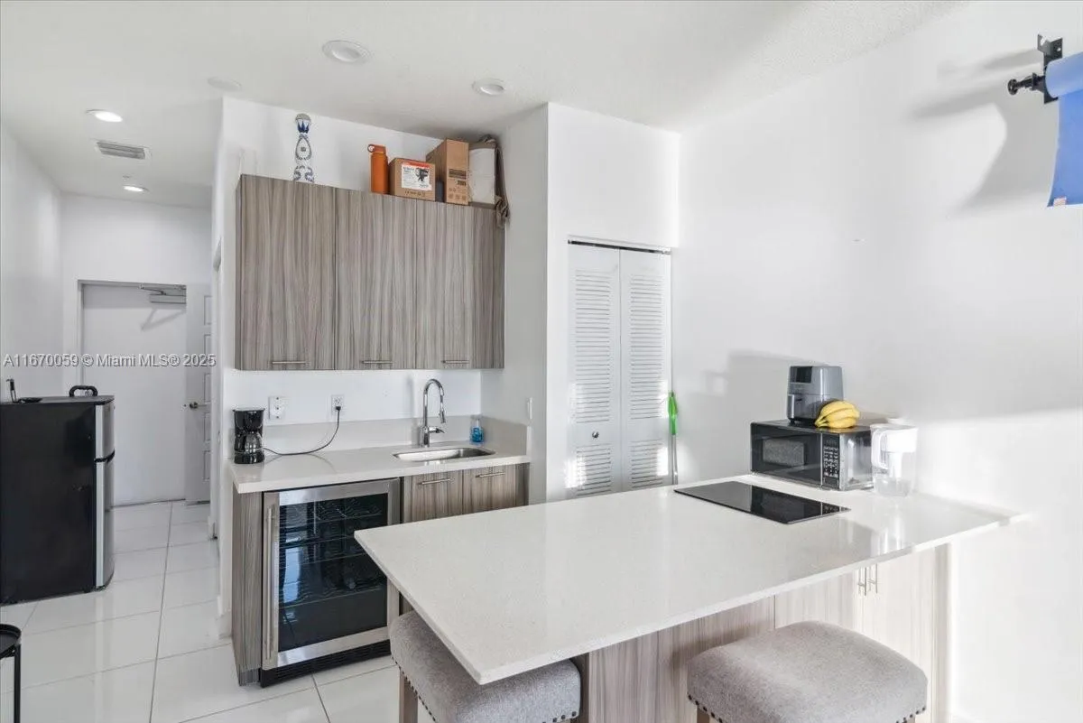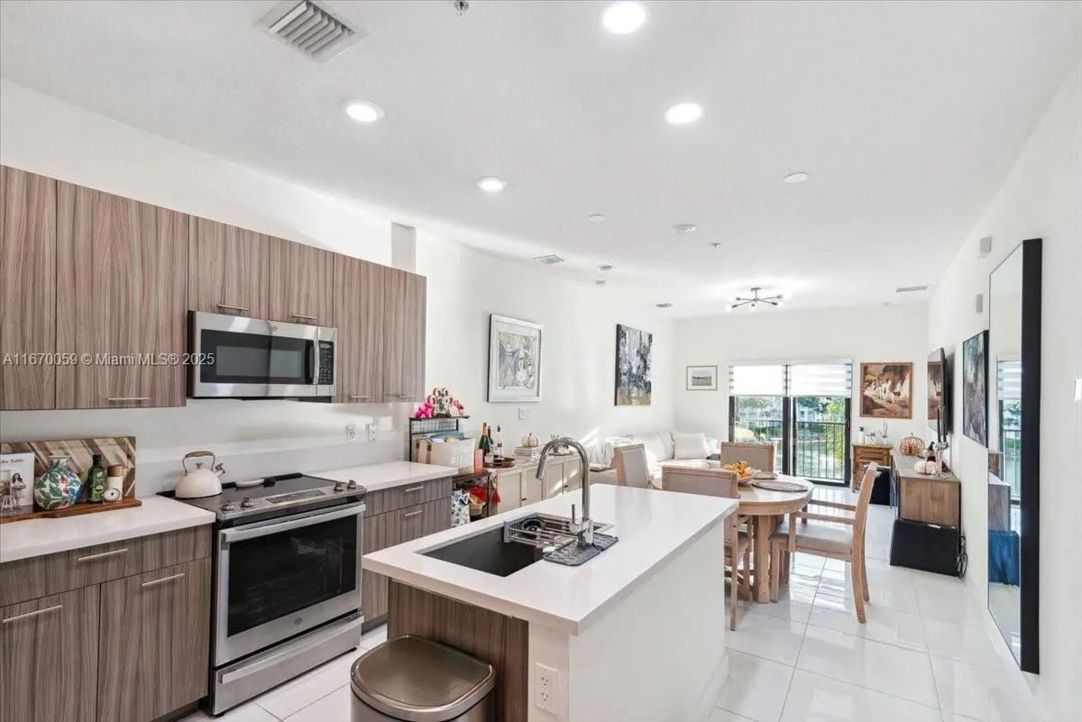 Why settle for ordinary when you can have lakefront living in Downtown Doral? This unique 2-bedroom, 2-bath NEXTGEN model is basically two homes in one: a cozy studio with a kitchen and full bath, plus a separate 1-bedroom unit featuring its own kitchen, washer/dryer, and a balcony with stunning lake views that scream, “I made it!”rnrnLocated on the 4th floor, you’ll be just steps from two parks—one for kids (bring the snacks) and one for dogs (because they deserve it). As part of the Urbana community, you’ll also enjoy premium perks like pools, a gym, indoor basketball courts, mini golf, and more. It’s like living at a resort without the room service fees.