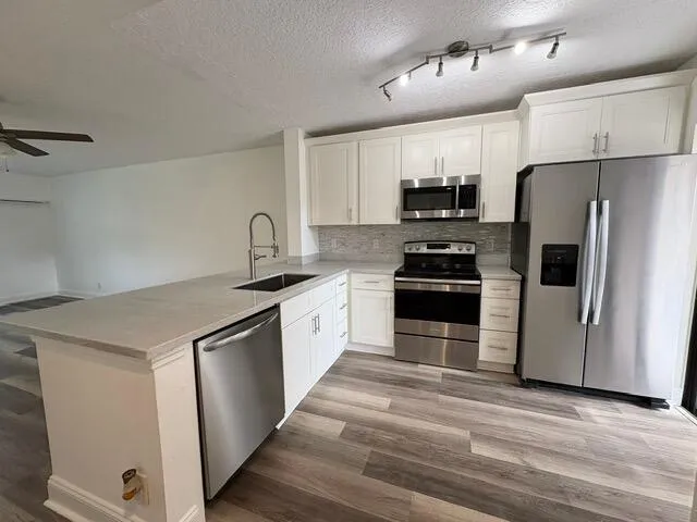 A Must-See East Boca Gem! Just First and security to move in!Step into coastal living with this beautifully renovated 2BR/2BA ground-floor condo in desirable Sanctuary Pines in East Boca! Enjoy a modern kitchen with quartz countertops, white shaker cabinets, and stainless-steel appliances, plus easy to maintain laminate flooring throughout.Recently renovated master bath. Brand new washer/dryer in unit! all the work is done! Move right in and relax on your private screened patio. Perfectly located near shops, dining, this condo offers the best of East Boca living, with access to a community pool and tennis court, minutes from the beach!Style, comfort, and location–this one has it all!