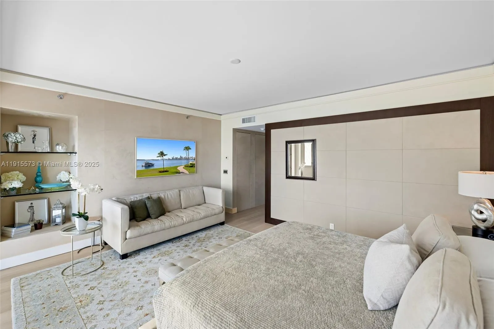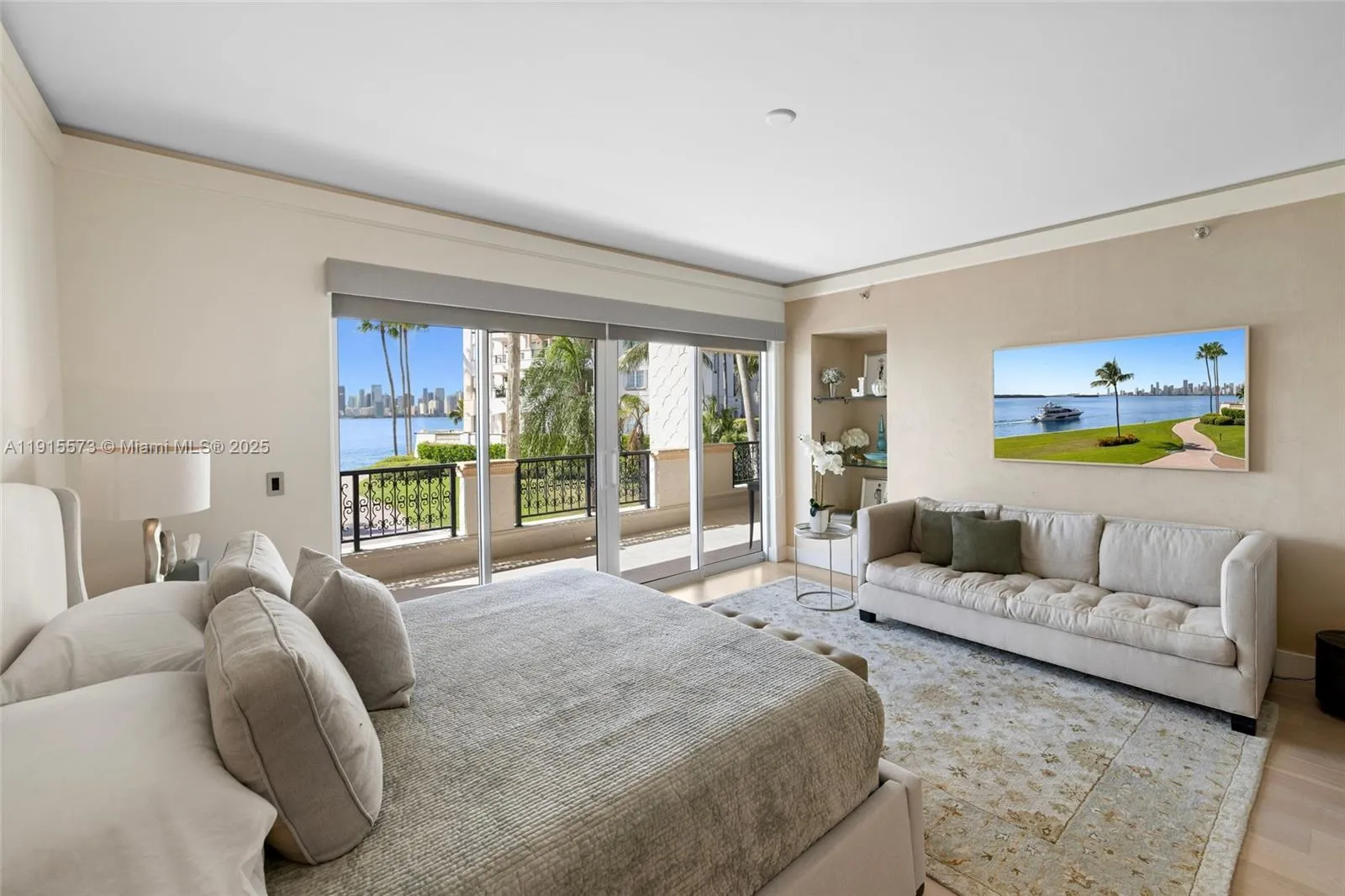 Located in the best boutique building on Fisher Island w/ the most breathtaking views of the city of Miami skyline, this completely renovated 3BR split BR flr plan is considered one of the most desirable on the island. Beautiful contemporary decor offered fully furnished, & inds one golf cart. Impact glass doors and windows throughout, clear glass front door exposes the gorgeous downtown city lights. Wood floors reconfigured modern kitchen and guest bedroom for more spacious easy living.
