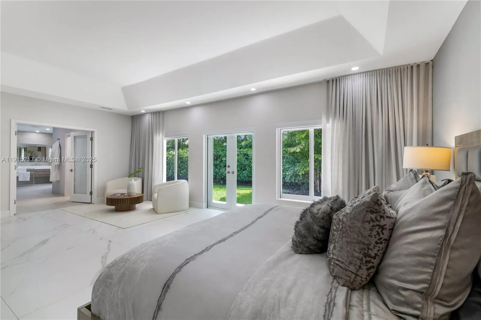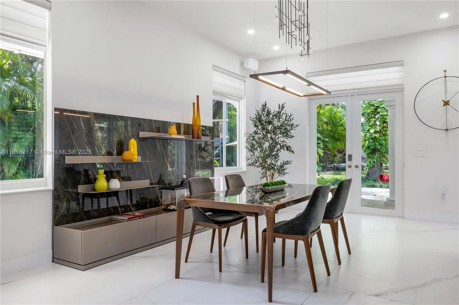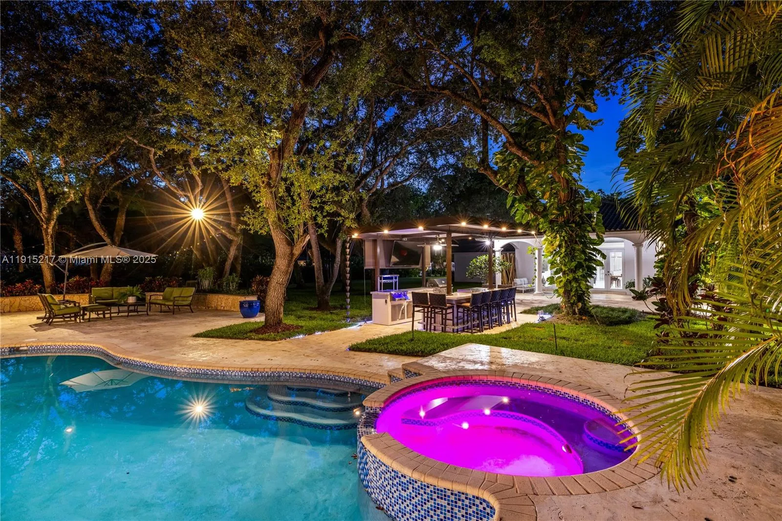 Stunning gated 1-story 8,126 total SF residence on a quiet cul-de-sac in prime North Pinecrest, steps from Gulliver & Beth Am. Set on a lush 1.1 acre with a 2-story, 1,300 SF guesthouse, treehouse, & ample parking. The 6-bed, 5.5-bath main home offers an office, new impact windows/doors, & Firenze Carrara polished marble tile throughout. Gourmet kitchen boasts a leather-textured marble island, Veneta Cucine cabinetry, & Miele appliances. Guest bath features full-height, single-slab Italian tile. Primary suite includes dual walk-in closets & a spa-style bath with Kohler DTV+ faucet less system for steam, audio, chromotherapy, & lighting. Whole-house Brilliant system manages lighting, Zoom intercom, & Sonos audio indoors/out. Outdoor oasis includes a new summer kitchen & resort-style pool.