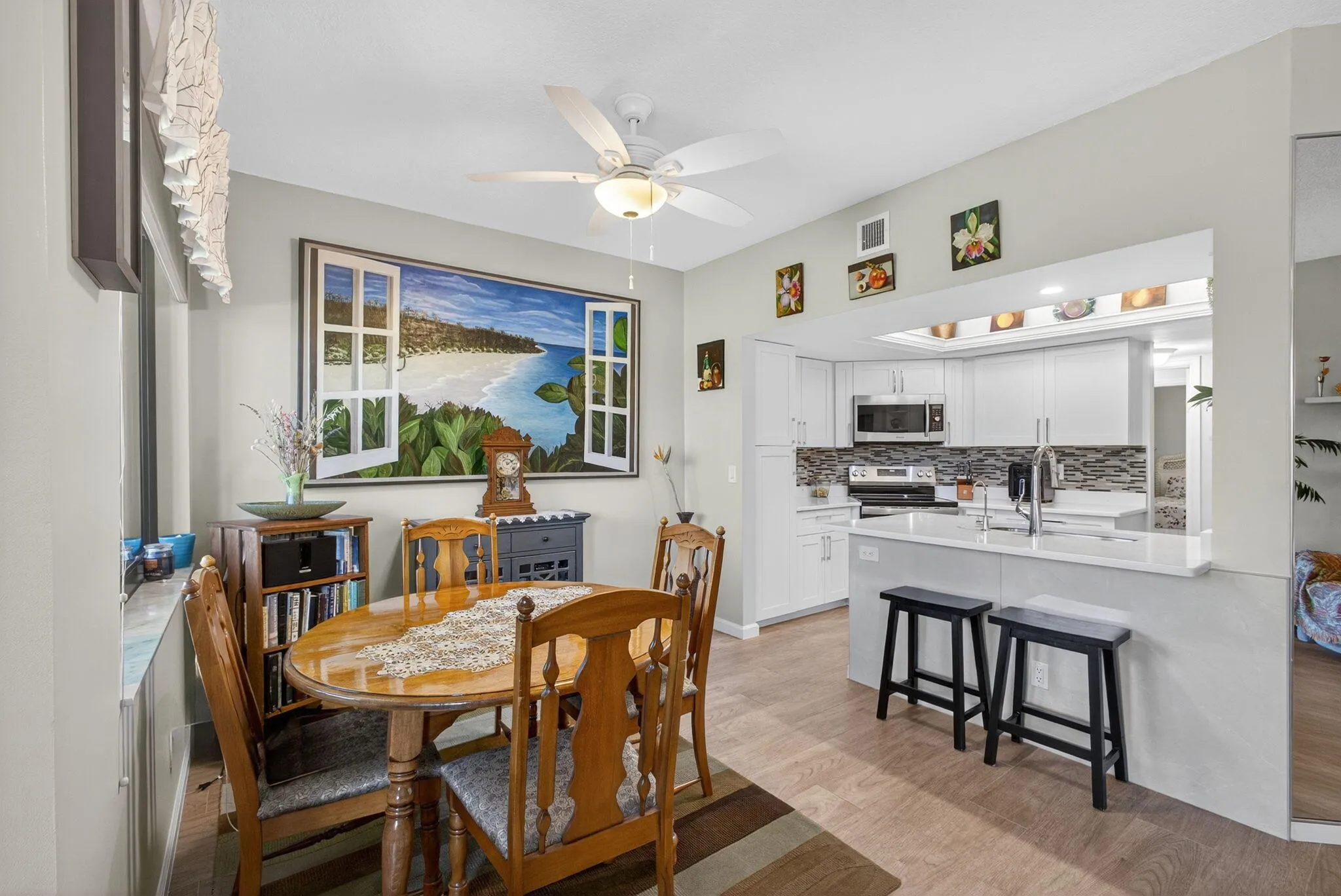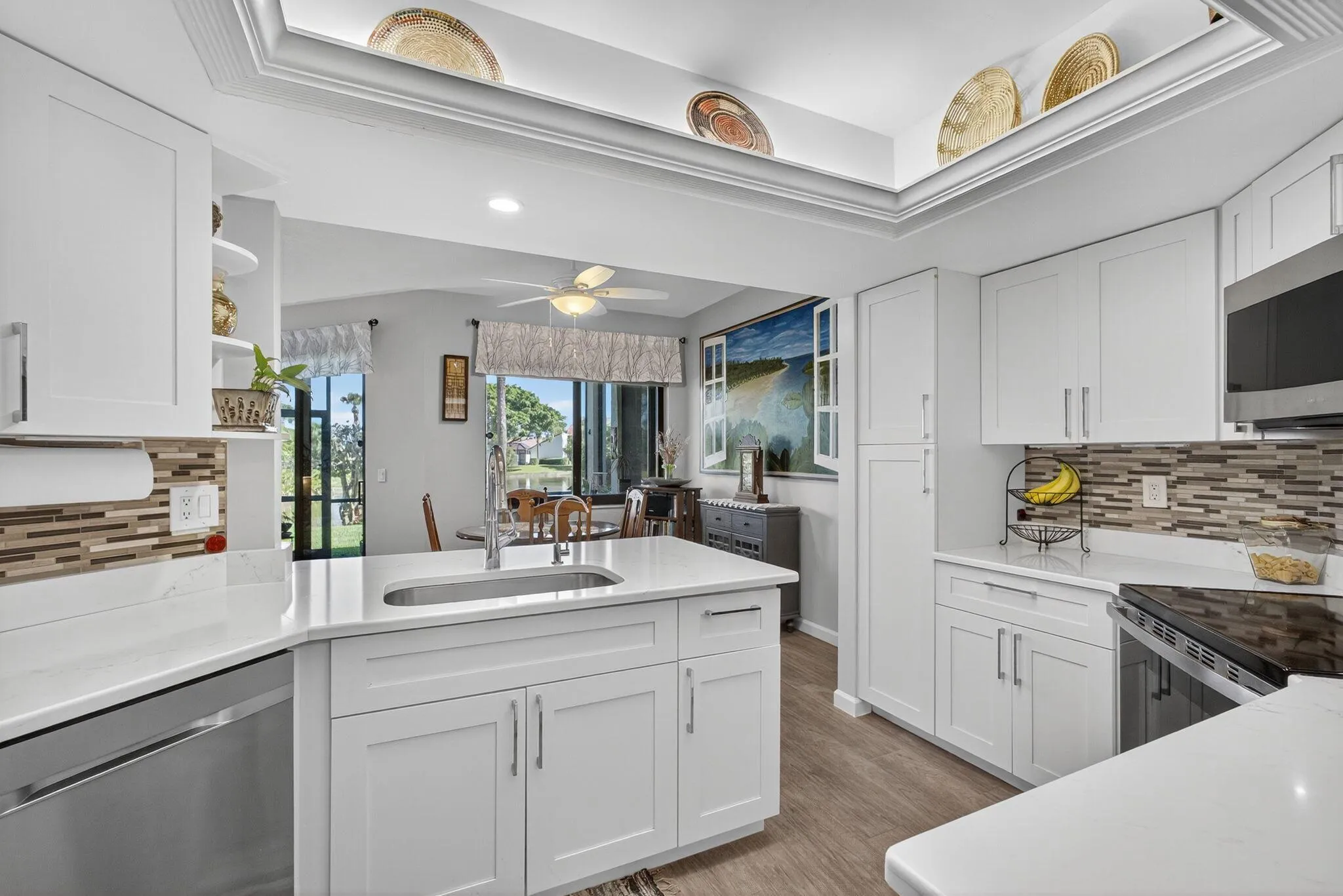 Experience sophisticated coastal living in this elegantly upgraded waterfront residence in the highly coveted Sea Oats of Juno Beach. Overlooking a tranquil preserve and shimmering pond, this 2BD, 2BA home with a 1-car garage features a screened-in porch, perfect for enjoying refreshing ocean breezes and just a short walk to the beach. Inside, the chef-inspired kitchen showcases quartz countertops, premium Samsung appliances, soft-close cabinetry, and designer lighting accenting a crown-trimmed tray ceiling.The primary suite is a serene retreat with preserve views and a beautifully renovated bath, while the guest suite offers custom closet built-ins and fresh modern finishes. Additional luxury upgrades include PGT impact windows (2020), new HVAC and water heater (2025),