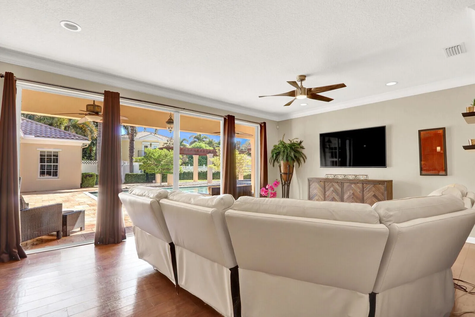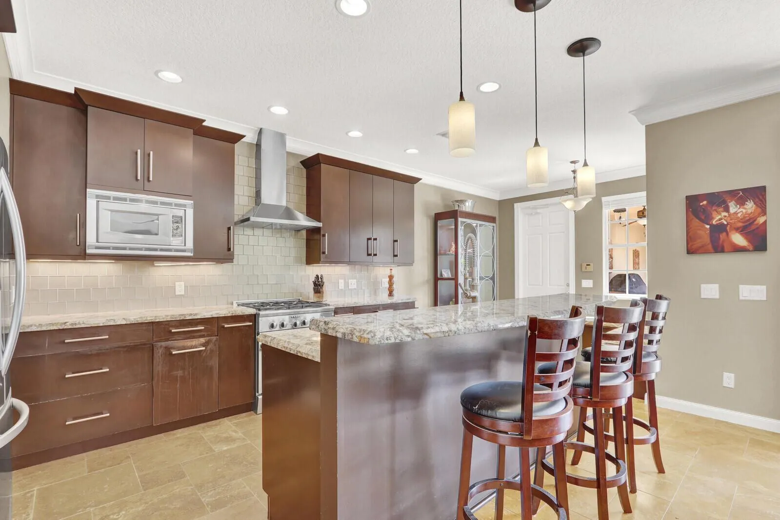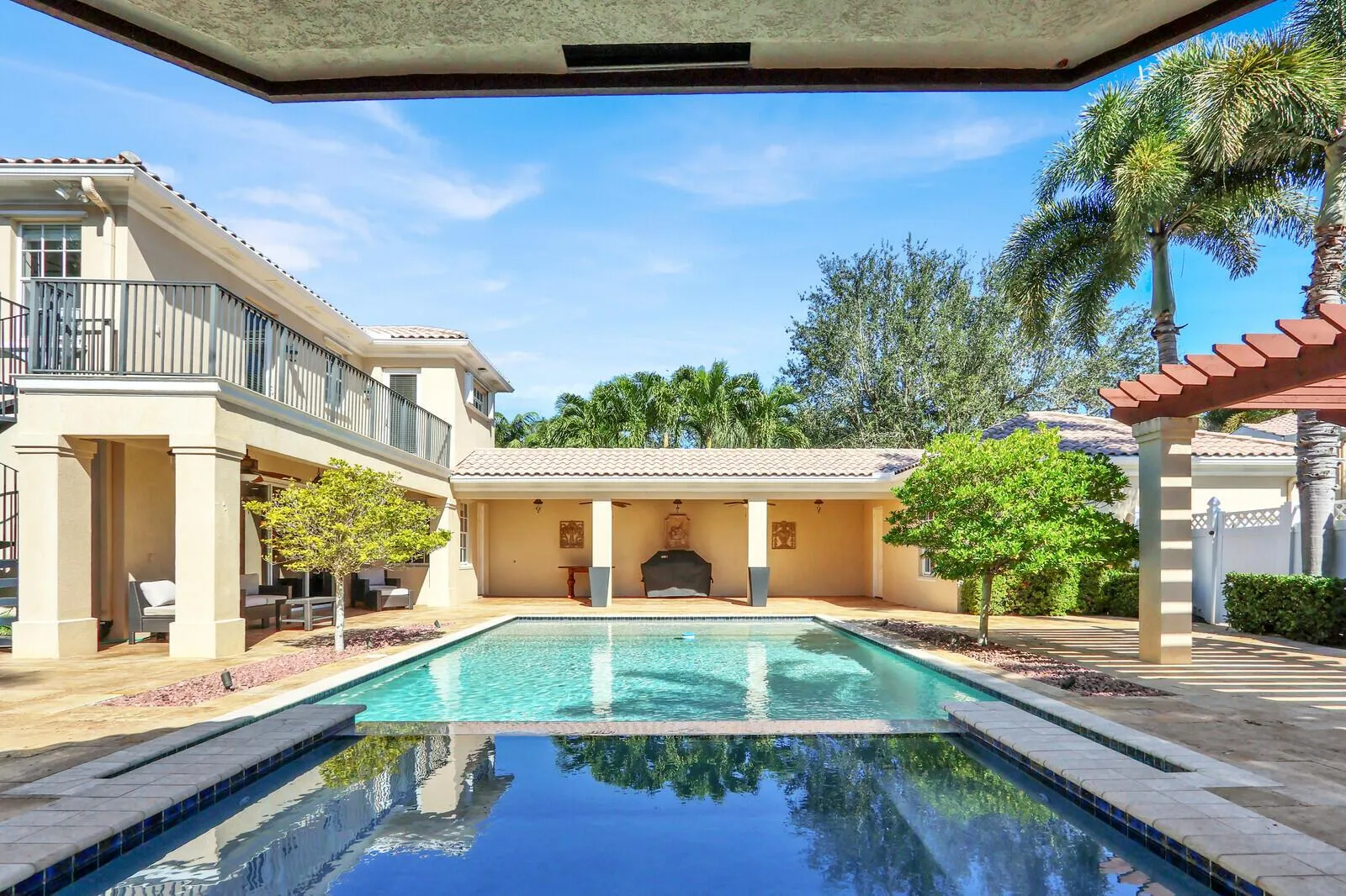 Come see this incredible outdoor oasis on one of the largest lots in Tuscany at Abacoa. This 4 BR/3BA home has an incredible huge custom pool and jacuzzi, with custom built gazebo, great for entertaining with friends and family. Wood flooring, custom kitchen, and butler pantry, with granite countertops, and stainless appliances. All of this across from an large open park on the north side of the community. Very quiet location, yard is fenced and landscaped for privacy. This home has a 1000 gallon propane tank that support the pool and jacuzzi heater, cooktop stove, clothes dryer, and has an access point for a grill outside in the lanai.