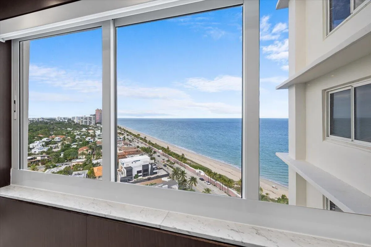 Experience elevated beachfront living in this sophisticated, fully renovated, and fully furnished Park Tower residence–complete with custom-designed furniture. This stunning 2-bedroom, 2-bath home offers breathtaking ocean, Intracoastal, and park views, with shimmering Atlantic vistas to the east and serene Birch State Park and Intracoastal panoramas to the west. Enjoy radiant sunrises over the ocean and glowing sunsets across the treetops, all from one impeccably finished residence.