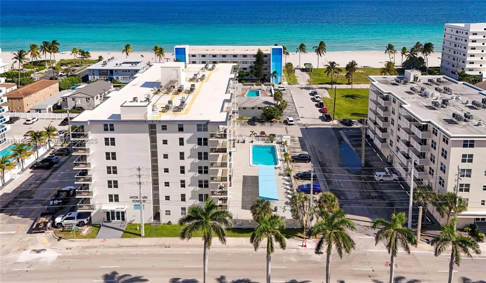 NO ASSESSMENTS! – 50-year certification Done !– Concrete restoration, new windows and doors, new balconies, and a new roof completed. This 2 BD 2 BA condo offers an open floorplan with bright dining and living areas that flow into a spacious kitchen with an eat-in breakfast bar and ample cabinet space. The primary BD includes a large walk-in closet and remodeled BA, and the second BD is also a generous size. Peaceful balcony overlooking the pool with a partial ocean view. A/C has been recently replaced. Steps from the beach and Hollywood Broadwalk, this condo works perfectly as a primary home or second residence. One assigned parking spot, pool, cabana BA, BBQ area, clubhouse, and more. Close to worship, dining, shopping, and entertainment, this well-kept unit offers year-round comfort and the true Hollywood lifestyle.