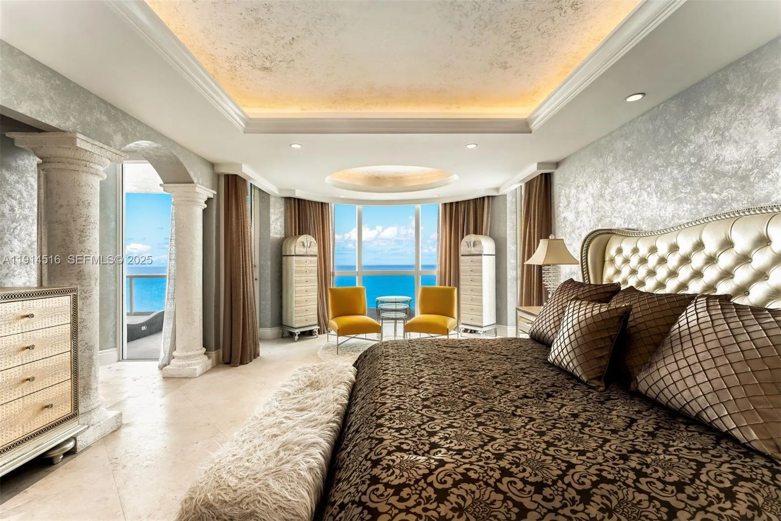 This exceptional penthouse offers remarkable space and ocean, city, and intracoastal views that fill every room. Adding to its scale, the property includes an oceanfront 1-bedroom cabana and 2 private guest quarters with ensuite baths. A private foyer, accessed by two elevators, opens into PH1, featuring 4 bedrooms, 4.5 baths, a den, and an additional office off the primary suite. The expansive primary bathroom includes his-and-hers walk-in closets and vanities, a separate shower, and a soaking tub facing Downtown Miami. A wraparound balcony spans the entire residence. The spacious kitchen offers a breakfast area and its own balcony. Located at Capobella, an exclusive boutique oceanfront building on Millionaire’s Row, the home also includes a dedicated laundry room and 5 parking spaces.