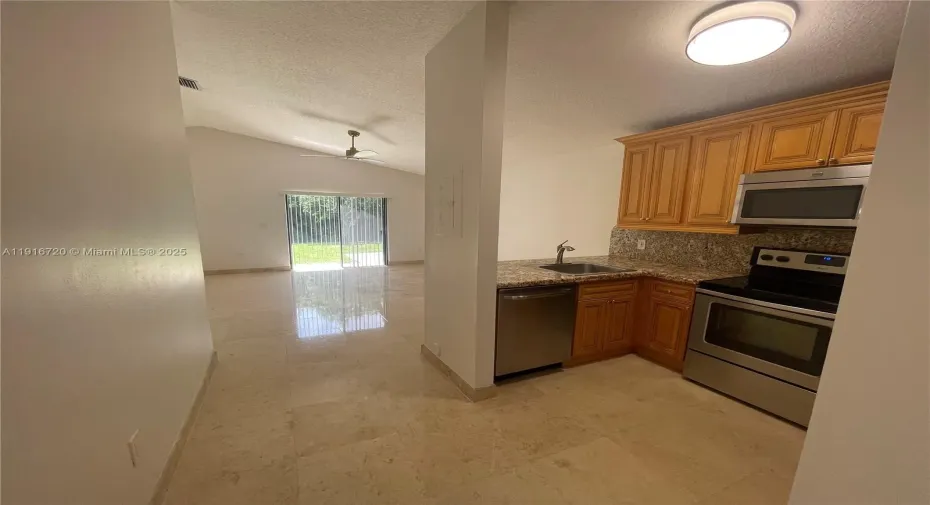 Beautifully renovated Redondo Villas unit in East Hollywood! This 2 Bedroom, 1 Bathroom villa-style apartment features all Travertine marble floors, a beautiful wood kitchen with granite countertops, stainless-steel appliances, built-in microwave, dishwasher, and the convenience of an in-unit washer/dryer. Enjoy central A/C, a private outdoor patio and reserved parking. Located next to a private golf course in a serene community with an in-ground pool.