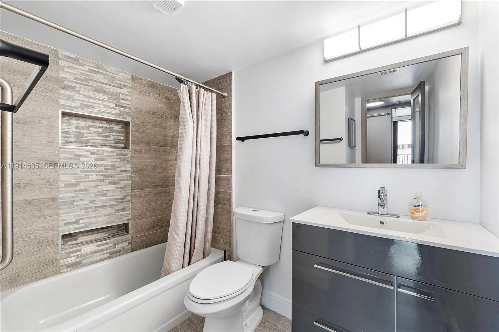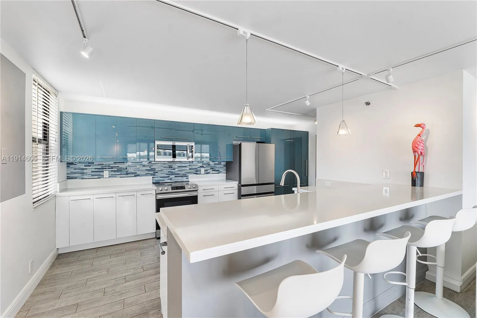 Welcome Lake Emerald! Fully renovated 2/2 with 1,300SF of interior living space. Corner unit offering amazing direct lake views from every room. Enjoy a full set of impact windows and floor-to-ceiling glass doors which open to a 32sf screened-in balcony for perfect sunrises/sunsets. The open kitchen has s.s appliances & quartz countertops. Primary bedrm has en-suite bath w/dual sinks, med. cabinets, shower & lg. walk-in closet. There’s a full-size washer/dryer, wood-style tile flooring, remote-controlled blinds, keyless entry. The guest bedrm has a Murphy bed for flexible use. Enjoy resort-style amenities: 3 pools, hot tubs, sauna, gym, sports courts, B.B.Q areas, lively clubhouse w/activities, & lakeside walking path. Close to beaches, Las Olas, Wilton Drive, airport and major highways.