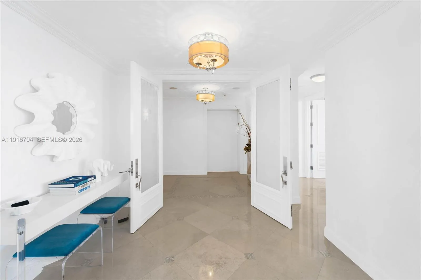 Experience the pinnacle of oceanfront luxury in this trophy Grand Penthouse residence at The Palms, Fort Lauderdale’s premier beachfront address. Perched atop the tower with direct oceanfront exposure and panoramic 360° views, this ultra-luxurious condominium offers the rare combination of privacy, prestige, and resort-style living. Encompassing 4,738 sq. ft of interior space and a total area of 5,742 sq. ft , this 3-bed, 3.5-bath masterpiece features soaring ceilings, marble flooring, and floor-to-ceiling impact windows framing breathtaking Atlantic vistas. The expansive open terrace provides unparalleled sunrise-to-sunset views. A designer kitchen anchors the home, complete with high-end appliances, a custom bar, built-ins, walk-in closets, and refined finishes throughout. Pure elegance. Garage parking best spots 2 together. Valet parking.