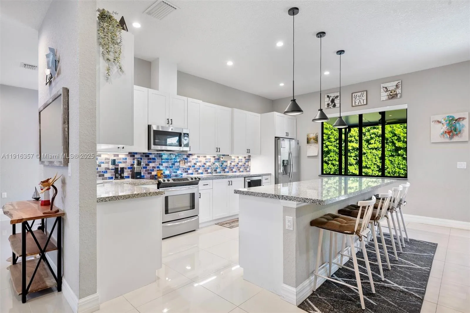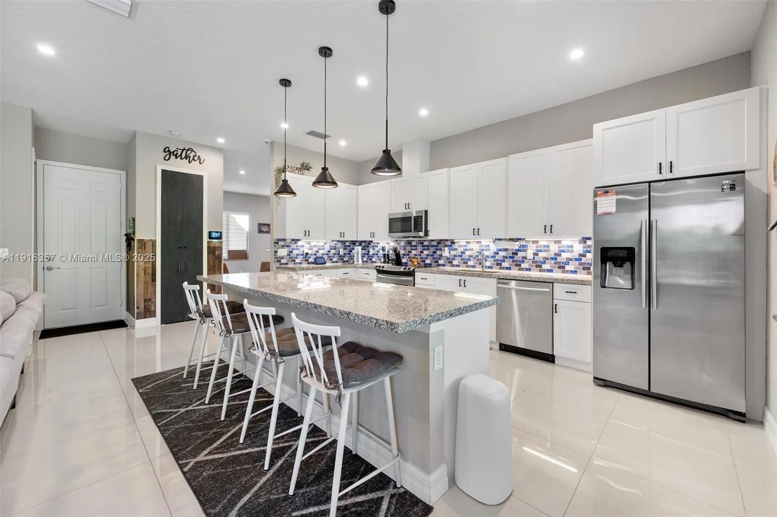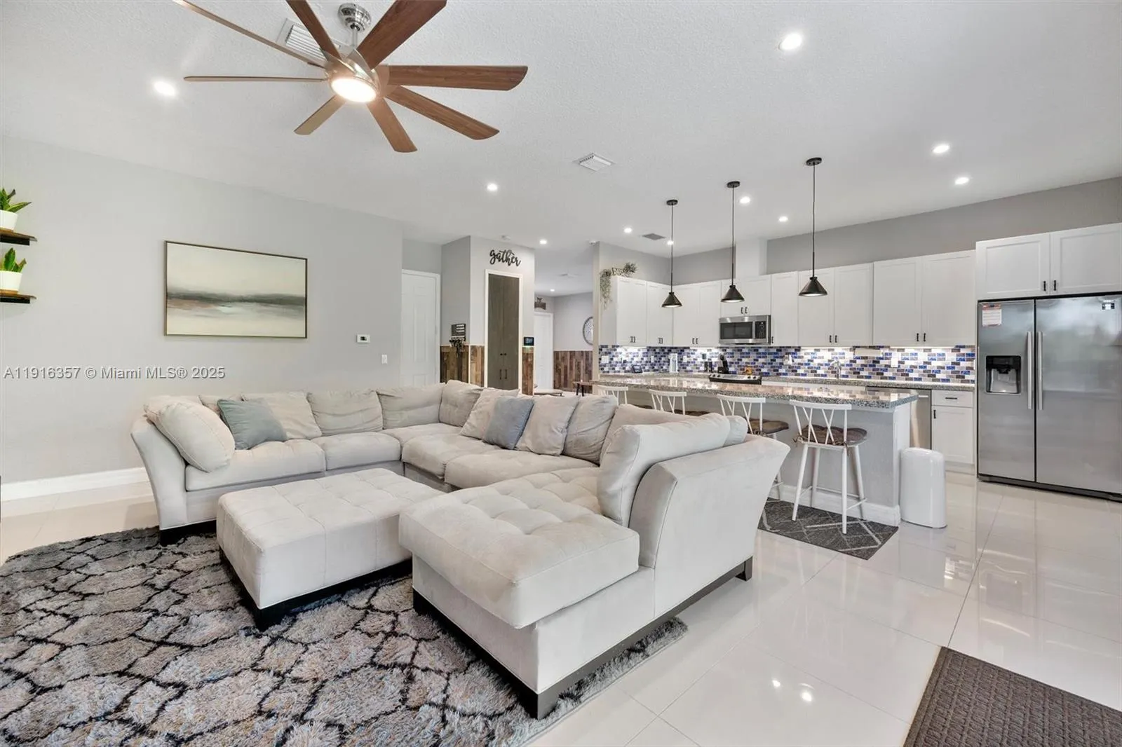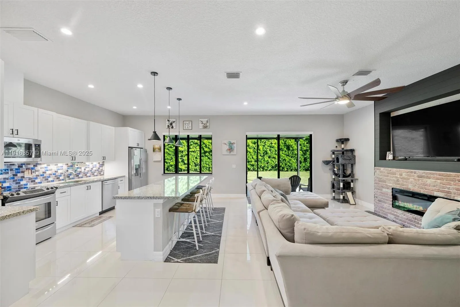This inviting 3-bed, 2-bath home offers 1,777 sq ft of comfortable space with high ceilings and tall interior doors that create an open, airy feel. The generous living area features an upgraded electric fireplace with a faux-stone finish and mounted TV setup, flowing easily into a spacious kitchen with a large island, ideal for everyday use or hosting. You will love the size of the property and backyard, along with the added comfort of a covered patio roof. Recent improvements include refreshed bathroom flooring, an upgraded garage with epoxy floors and a mini-split, and an electric side gate. Enjoy an extended driveway, and a covered, insulated patio with ceiling fans that provides a relaxing spot year-round. No HOA! No CDD! Mortgage savings may be available for buyers of this listing.