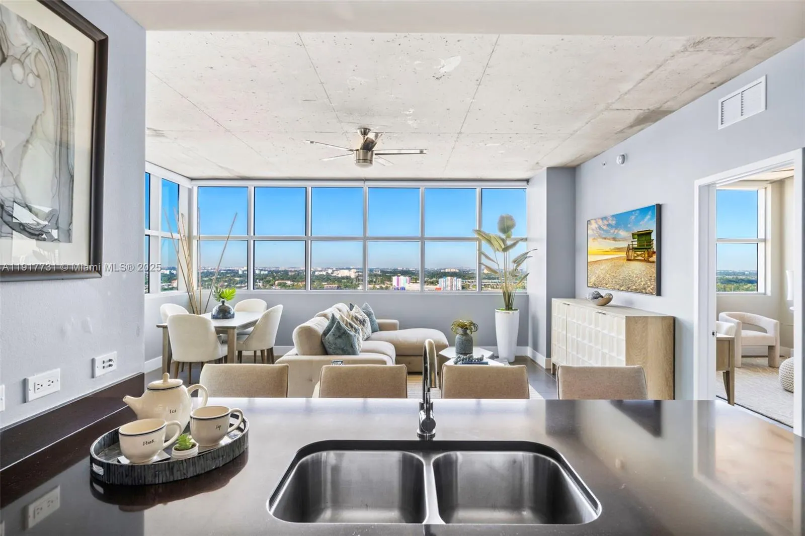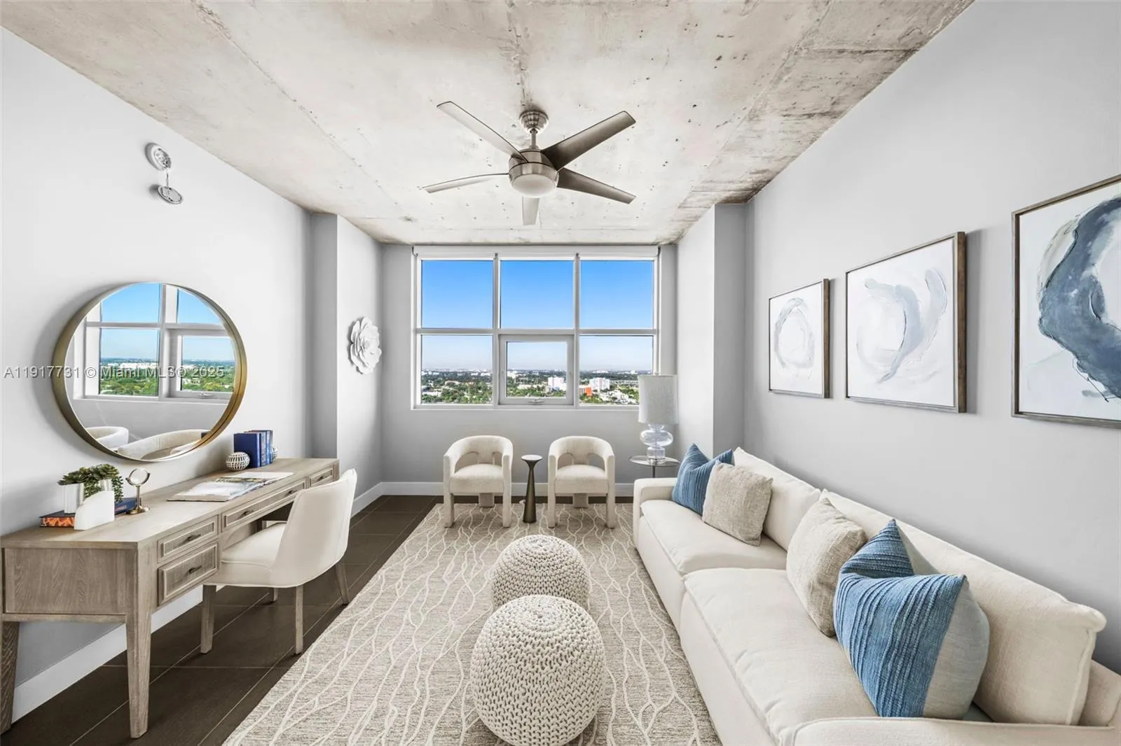 Step inside this industrial chic residence located in the heart of Midtown. The sought-after 01 line offers corner privacy, a comfortable 2/2 split floor plan and a unique balcony that acts as an extension of the living area as a large portion of it is nestled underneath a private covering. This open and bright space feels like a glamorous home sitting high above Miami’s most desirable neighborhood. The newly renovated Four Midtown showcases an expansive pool deck, new fitness center, sauna, steam, new co-working lounge, covered parking and 24/7 staff. W/D in unit, deeded parking. Easy to show.