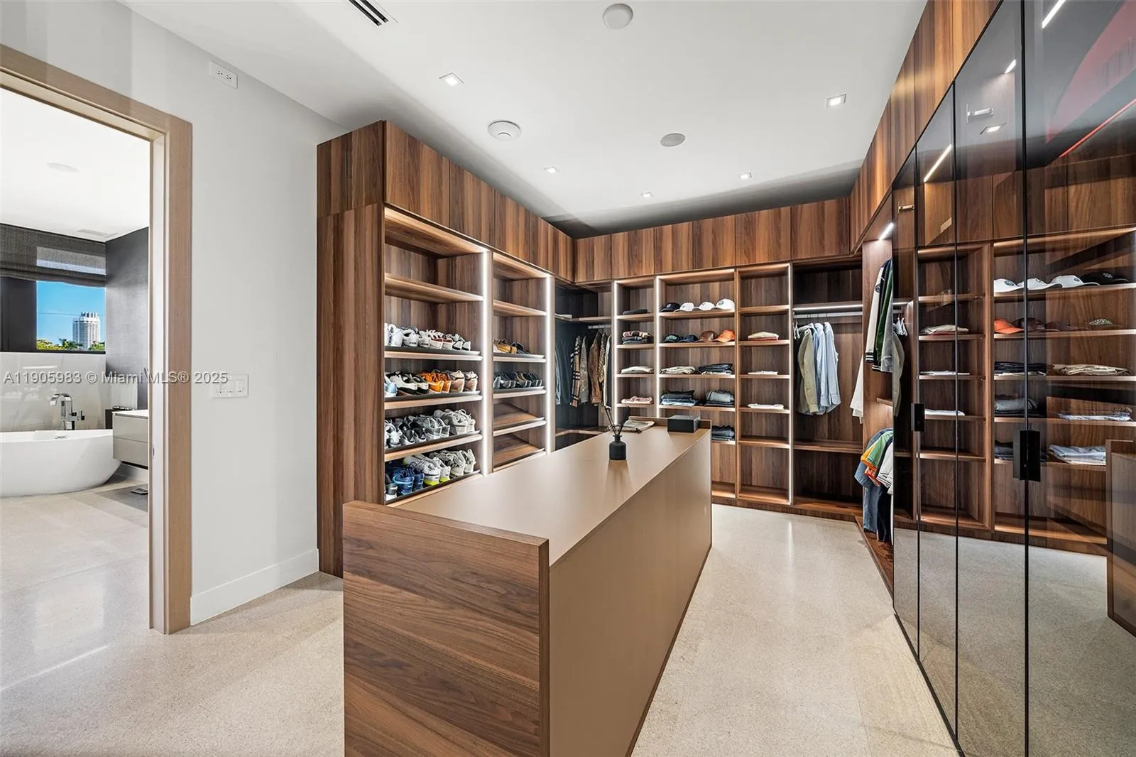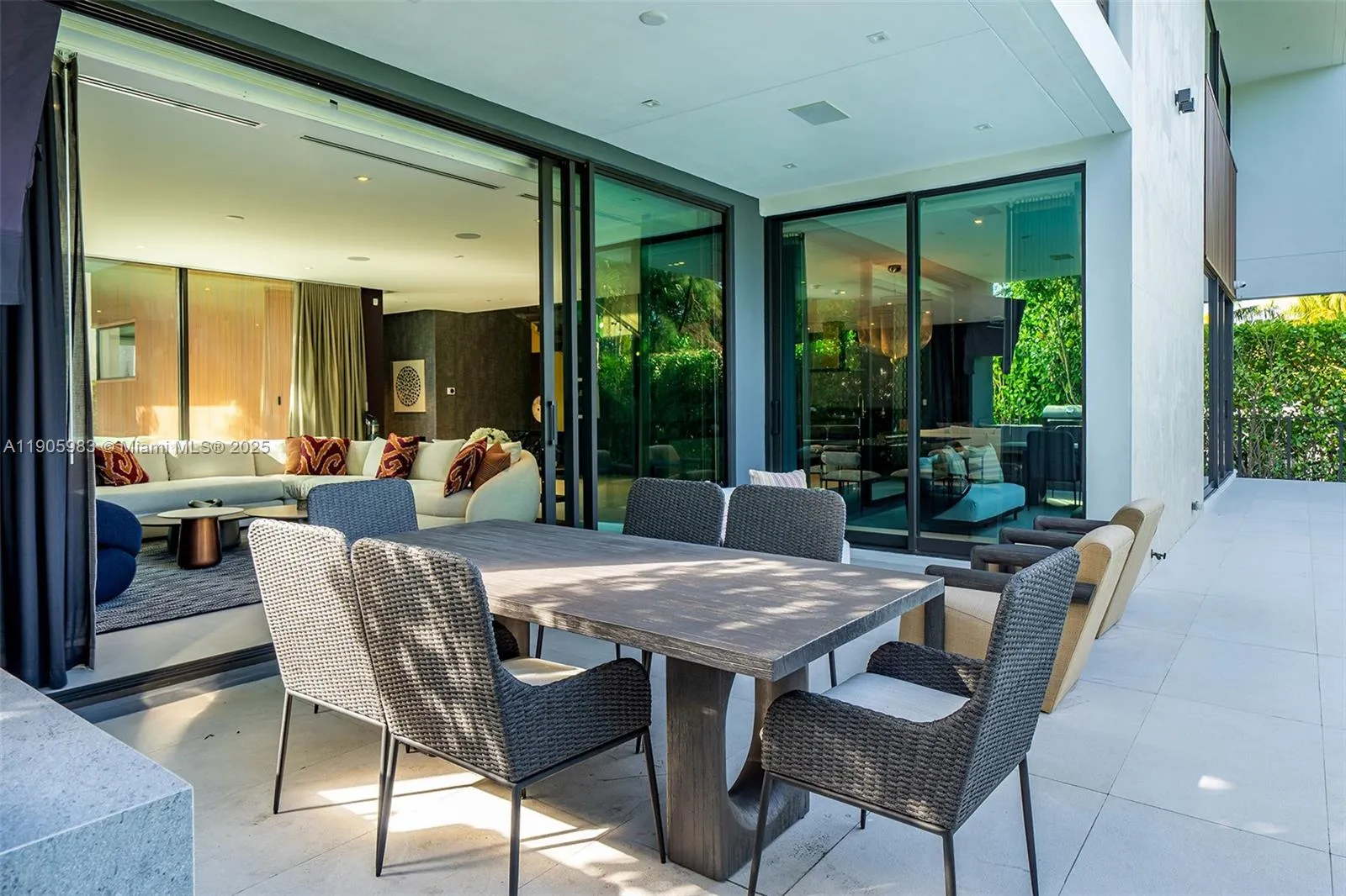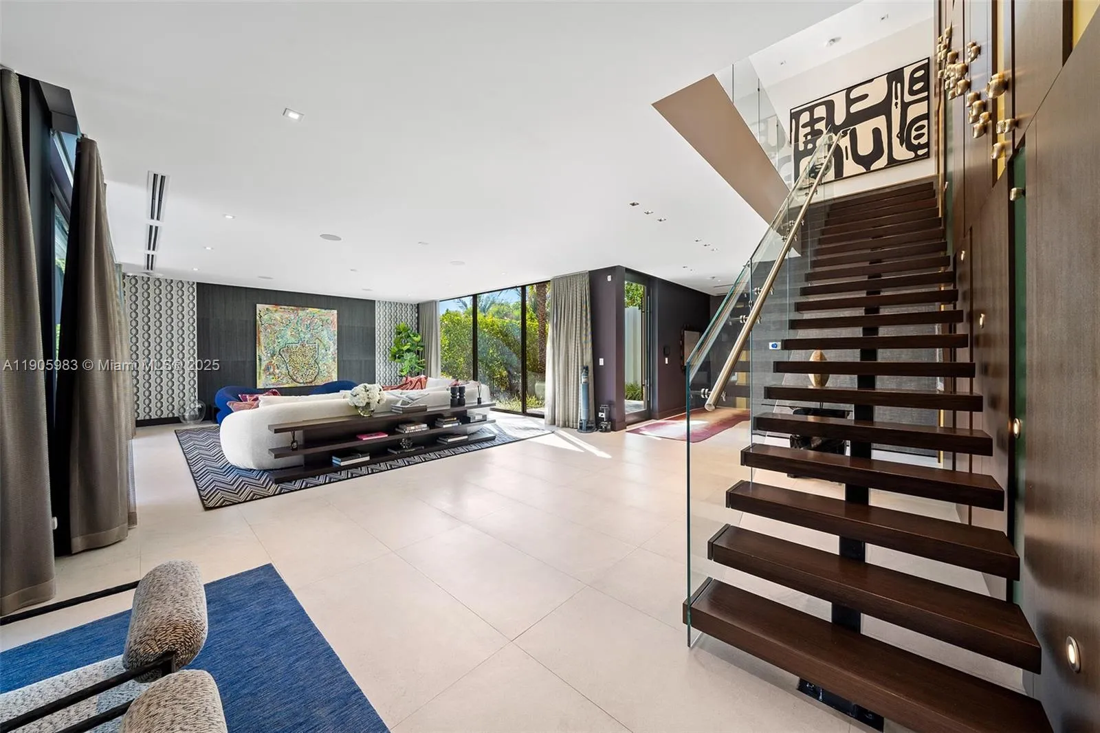 Stunning contemporary villa in Miami Beach’s Nautilus neighborhood, offering a two-story entry, open living and dining areas, a custom chef’s kitchen, and abundant natural light. Features a private pool with lush landscaping, a first-floor guest suite, and spacious en-suite bedrooms upstairs, including a primary suite with walk-in closet and terrace. High ceilings and modern finishes throughout.