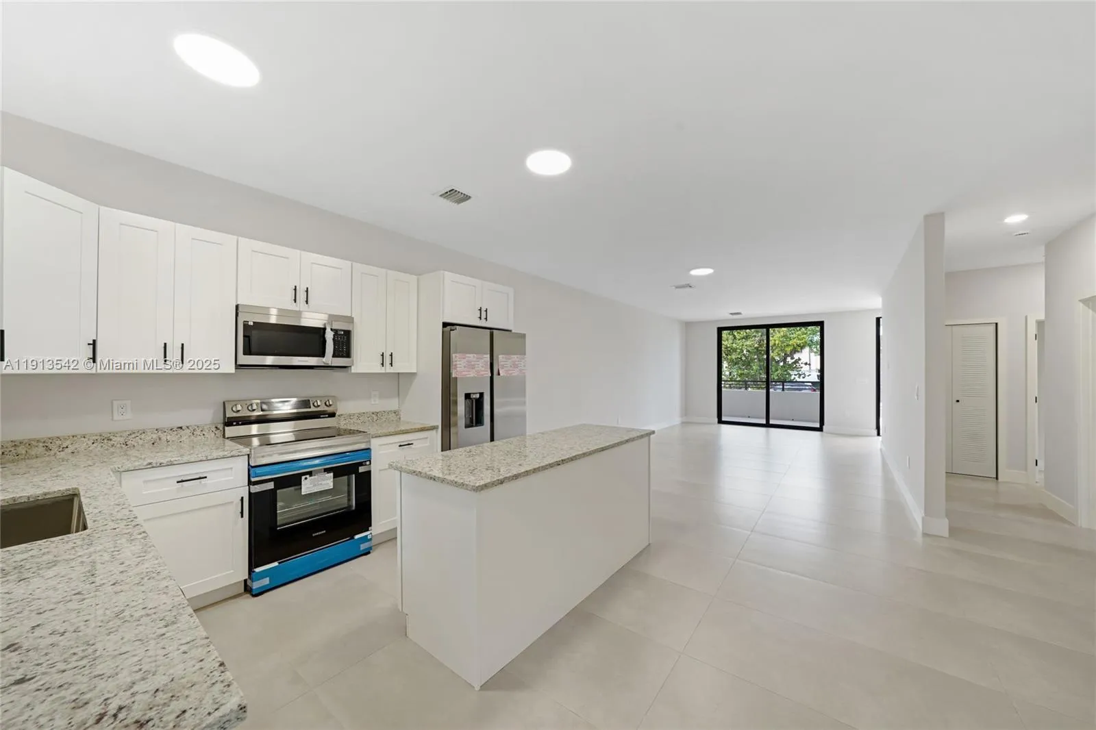 Beautifully built, brand-new construction! This unit is located on the first floor. A 3-bed, 2-bath residence features two modern bathrooms with walk-in showers, large format tile throughout, and an open kitchen with an island, stainless steel appliances, and recessed lighting. The floor plan is bright and airy, designed for comfortable living. Residents will enjoy a private entrance, private parking, and a private adjacent storage closet, along with a clean, modern aesthetic throughout. This unit has 2 covered balconies. Move-in ready and ideal for tenants seeking style, convenience, and comfort.
