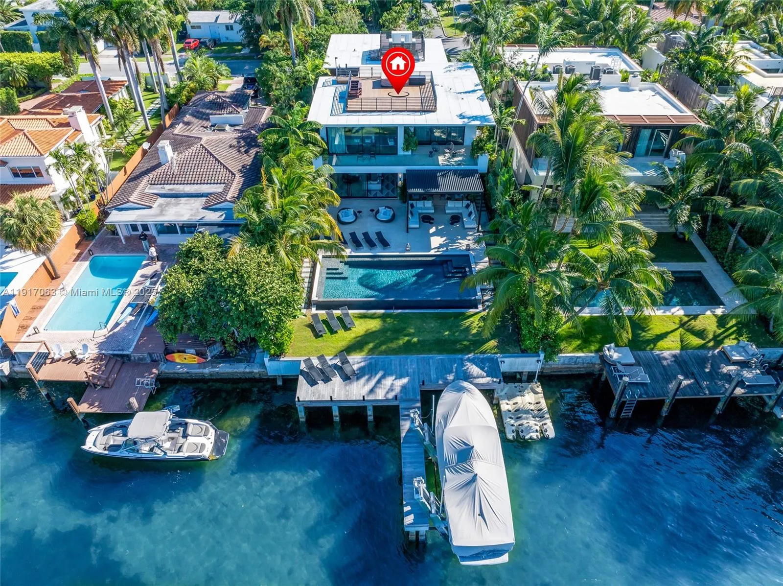 Experience unparalleled luxury on Miami Beach’s exclusive Venetian Islands. This exceptional newly constructed estate offers a total of 7,850 square feet of premier waterfront living, featuring expansive west-facing views of Biscayne Bay, direct water access, and private dockage.rnrnExpertly designed by BRG Studio and Italian Architect Giampiero Panepinto to provide seamless, resort-style living, the residence includes six bedrooms, six full bathrooms, and one half bath. Interior highlights include Minotti furnishings, a gourmet Italian chef’s kitchen, a custom Yves Saint Laurent Marble bathroom, and bespoke Italian finishes incorporating Carrara, Santafiora, and Botticino marble throughout.rnrnFully Automated and appointed with 14-foot ceilings, the home showcases a stunning and Expansive Primary Suite offering unobstructed water views from every vantage point. Outdoor amenities include a private pool, covered terraces and rooftop area, and lush tropical landscaping. All of this is located just minutes from South Beach, the Design District, and world-class dining and shopping.