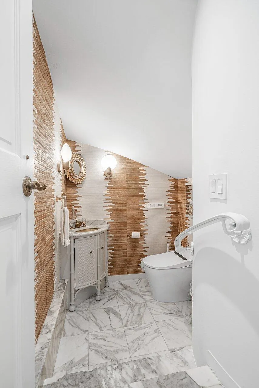Stunning ocean block estate blending timeless architecture with modern luxury on pristine Brazilian Avenue in the heart of town. Sited on a 12,825 sq ft lot, this renovated Mediterranean Revival estate rises 3 stories and includes a 4-bedroom, 4.5-bath main residence and a beautifully appointed 2-bedroom/2 bath guest house. Filled with natural light and exquisite details, the home features a double living room with fireplace, 10′ ceilings, formal dining room, library, and inviting family room. Chef’s kitchen with Lacanche range, marble counters, custom island and built ins. French doors throughout lead to a covered coquina stone patio and heated salt water pool. Primary suite with marble fireplace, walk-in closet and elegant bath. 3 additional en-suite bedrooms, light oak wood floors