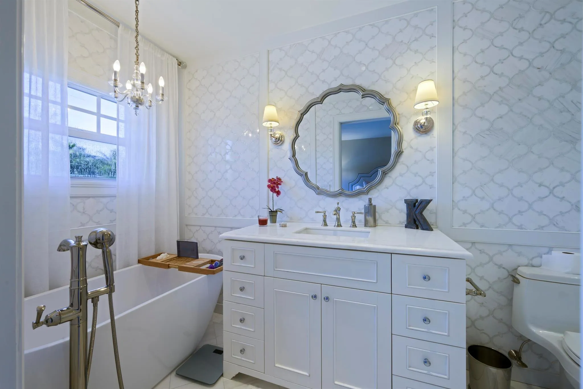 Set on one of the most prestigious streets South of Southern (SoSo), 245 Murray Road is a Spanish Mediterranean estate that has been completely reimagined by the renowned architectural firm Spina O’Rourke. Behind its custom pecky cypress front door, the residence unveils a grand living room with soaring 13-foot vaulted ceilings, dramatic pecky cypress beams, a marble fireplace, tongue-and-groove detailing, and wrought-iron accents that carry through the home. The formal dining room is equally captivating with its pecky cypress ceiling, chandelier, and oak hardwood flooring. Designed for entertaining, the main level offers a theater room, billiards lounge with a custom bar, and a warm family room that flows seamlessly into the chef’s kitchen,