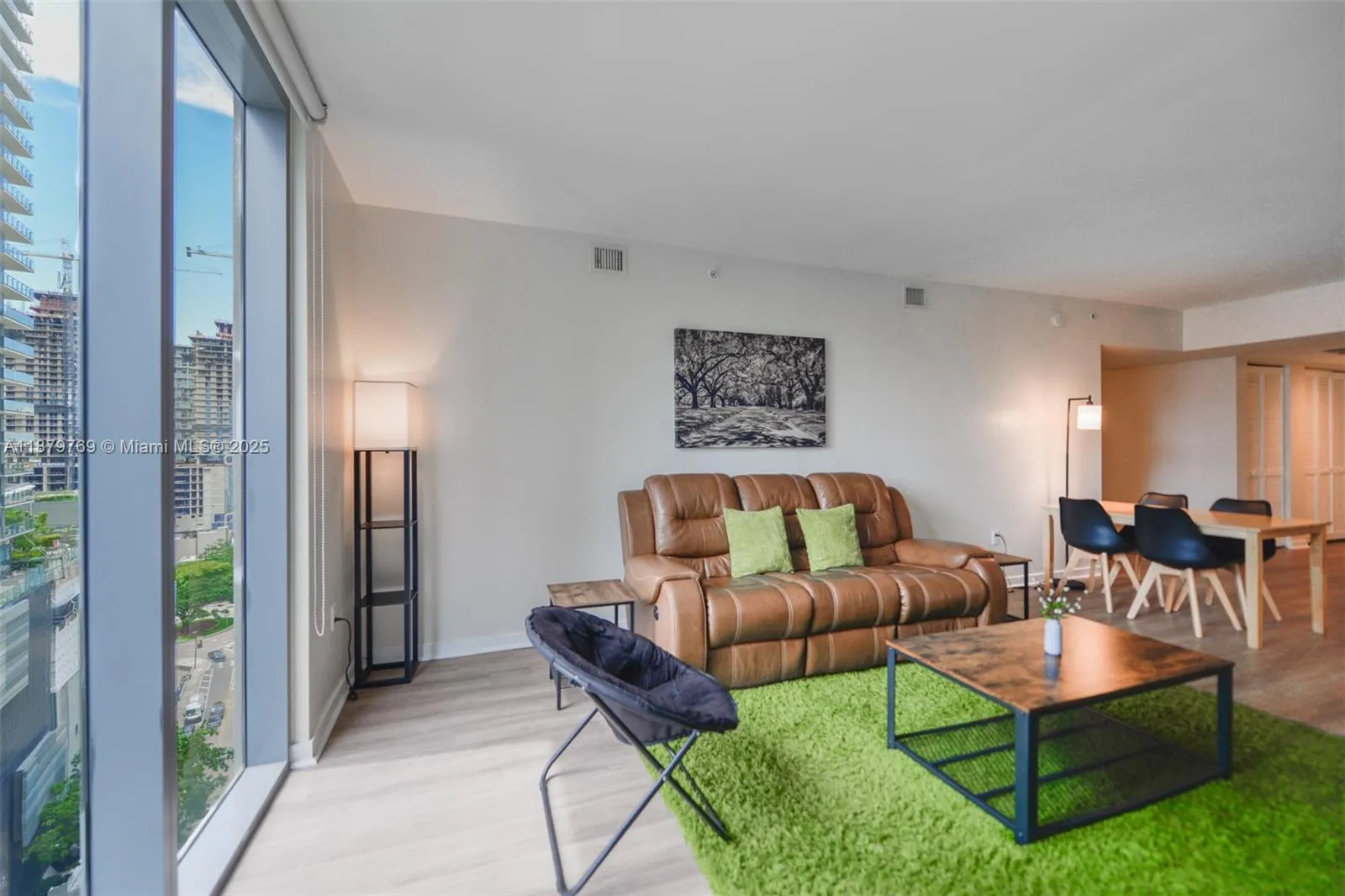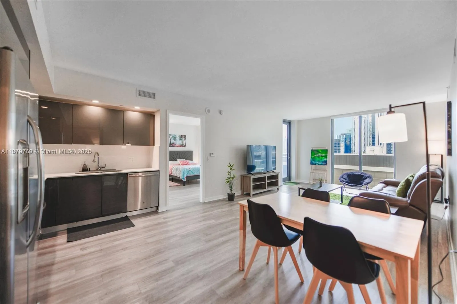 This fully furnished, modern, and sleek condo features two bedrooms, two bathrooms, and a den. It includes a private washer and dryer, as well as a spacious balcony with gorgeous city views, accessible from both the living area and the primary bedroom. The building offers exceptional amenities, including a full gym, a social room with a billiard table and theater, spectacular pool under renovations which will be available shortly, internet and valet parking. Conveniently located just minutes from the Metro Mover, this unit is also close to restaurants, bars, and shops, offering a lifestyle of comfort and ease.