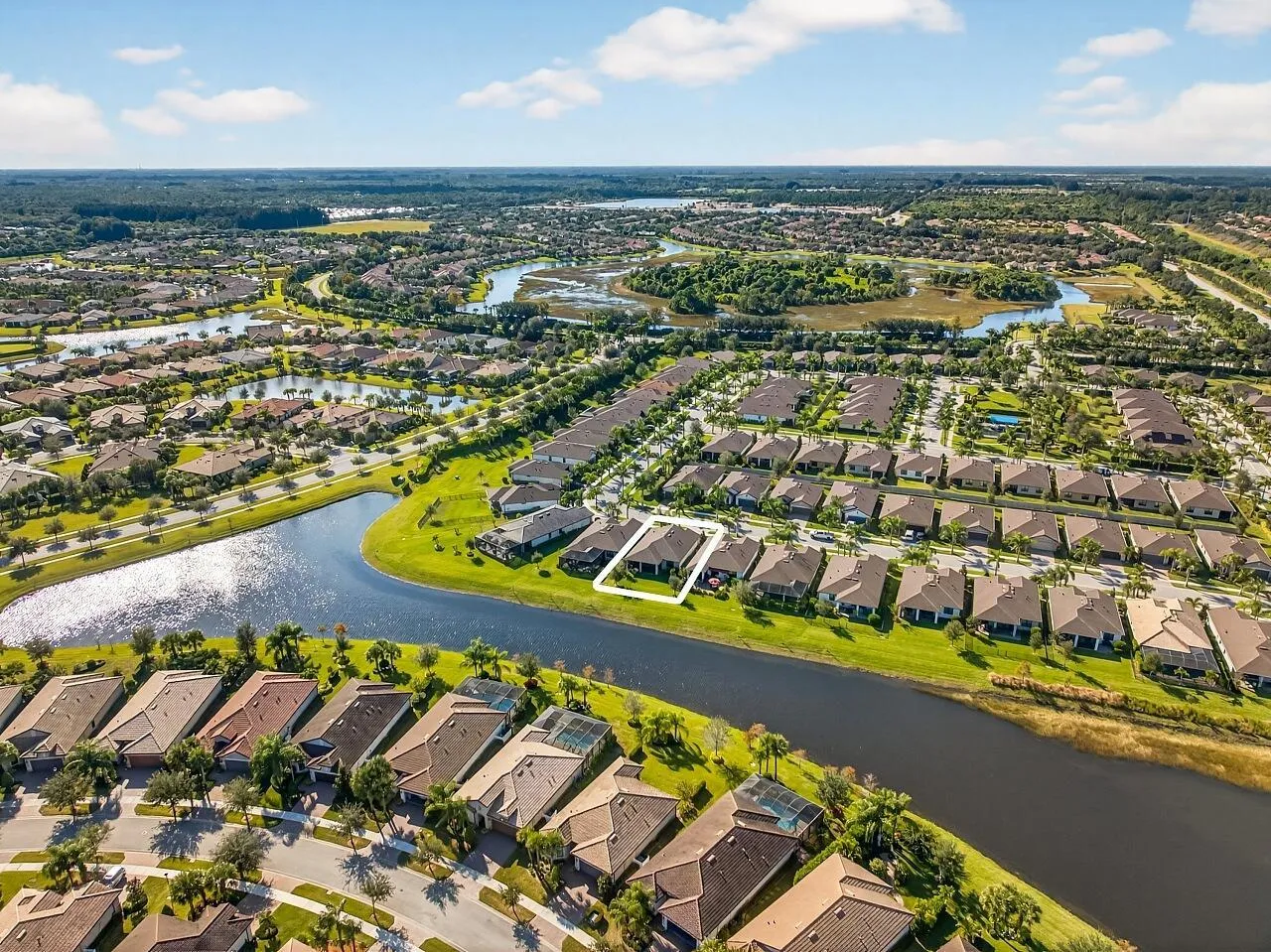Discover true waterfront living at Magnolia Court in Waterway Village. This beautifully upgraded 2020 Divosta Marina Floor plan offers a lifestyle that the other listings simply can’t match–serene water views, enhanced outdoor living, and thoughtful interior finishes that elevate everyday comfort.Step inside to 1,704 sq ft of stylish, low-maintenance living featuring porcelain tile throughout, impact windows, custom window treatments, and a motorized blind in the living room for effortless light control. The heart of the home is the bright, open kitchen with quartz countertops, Whirlpool appliances, designer backsplash, under-cabinet lighting, and upgraded pull-out cabinetry that makes storage a breeze.The waterfront lifestyle continues into the spacious primary suite, complete