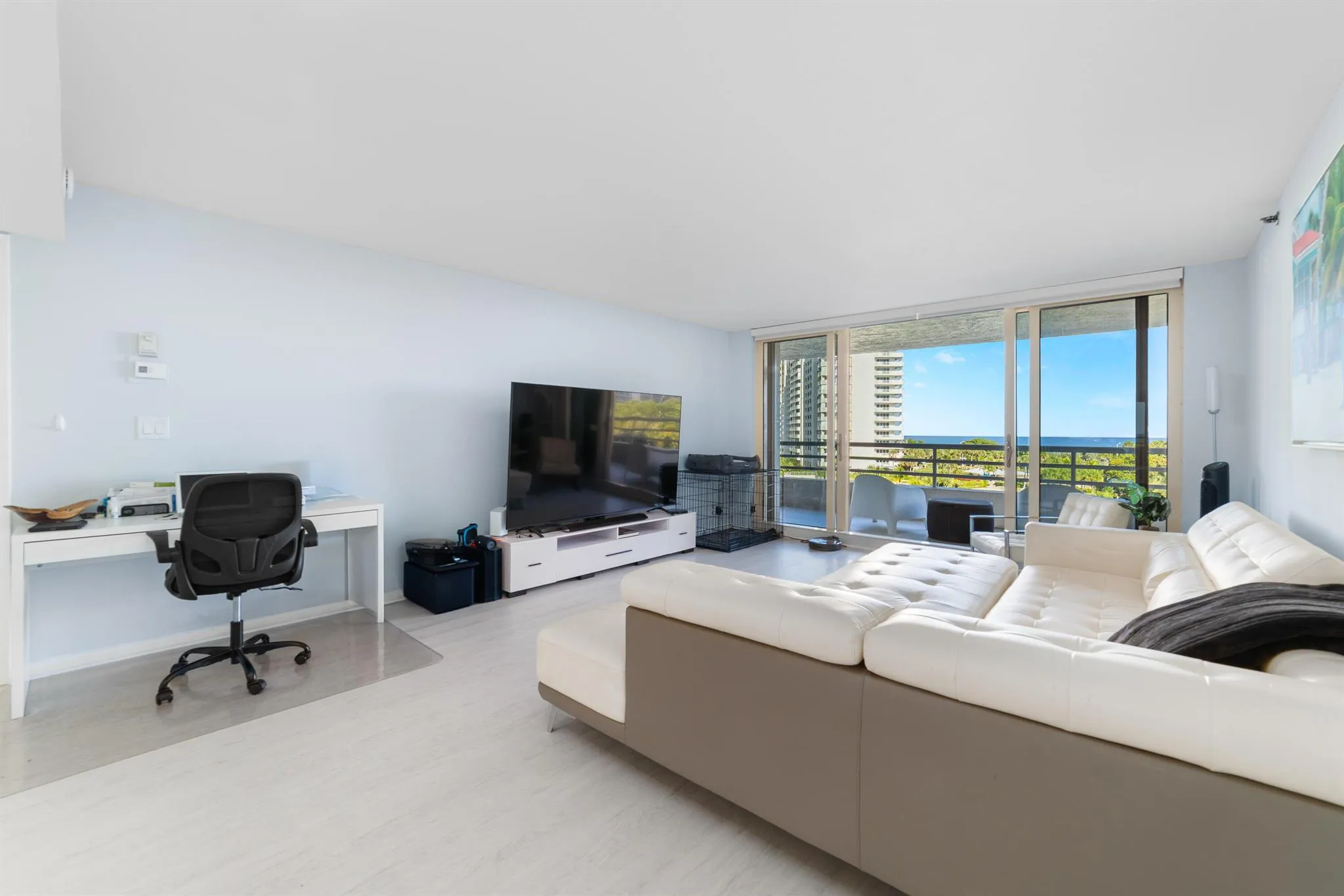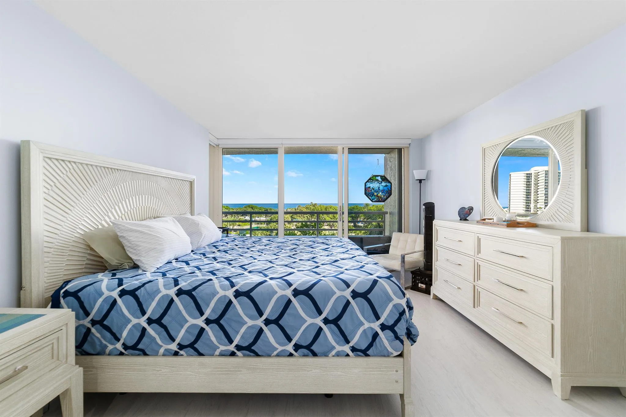 Enjoy your seasonal residence in this stunning, completely UPDATED 2 bedroom, 2 bathroom unit with DIRECT OCEAN VIEW from EVERY room! There is beautiful plank tile and impact protection throughout. The gorgeous kitchen is equipped with quartz counter tops, stainless steel appliances, elegant backsplash and a coffee station / bar. The primary suite offers access to the balcony with serene ocean views. An en-suite bathroom features a soaking tub and a glass-enclosed shower. Split floor plan is great for privacy. Sea Ranch residents take advantage of resort-style amenities, deeded beach access with cabanas and umbrellas, several swimming pools, state-of-the-art fitness center, tennis and pickleball ball courts, BBQ area, marina, and 24-hour security.