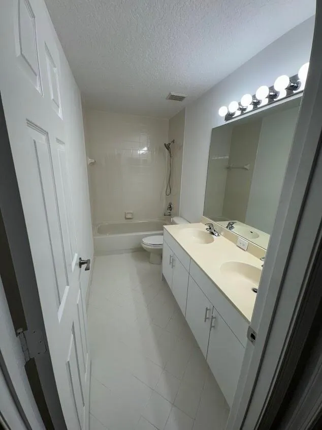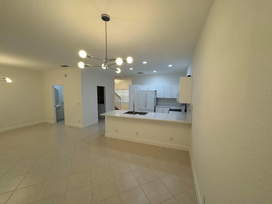 Upgraded 3 bedroom, 2 2/1 bathroom townhouse in excellent location! Tile and laminate flooring throughout the unit. The expansive first floor features a large front room, a kitchen that opens to a spacious living area, a convenient half bath and a laundry room with full size washer and dryer. Primary bedroom upstairs has walk-in closet and bathroom complete with a separate shower and roman tub. Large screened private patio. Community situated in the prestigious Boca Chase neighborhood renowned for its top-rated schools. Centrally located close to shops, restaurants and supermarkets.